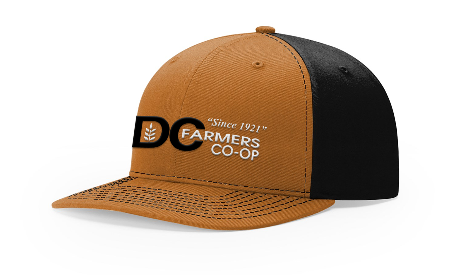 DC CO-OP Embroidered Black and White Logo on Carmel/Black 312 (Set of 12hats)