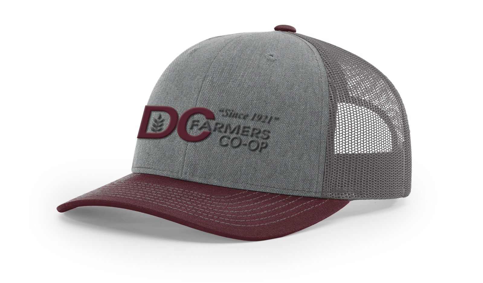 DC CO-OP Embroidered Maroon and Charcoal Logo on Heather/Maroon 112 (Set of 12hats)