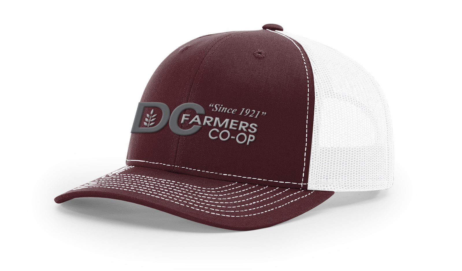 DC CO-OP Embroidered Charcoal and Gray Logo on Maroon/White 112 (Set of 12hats)