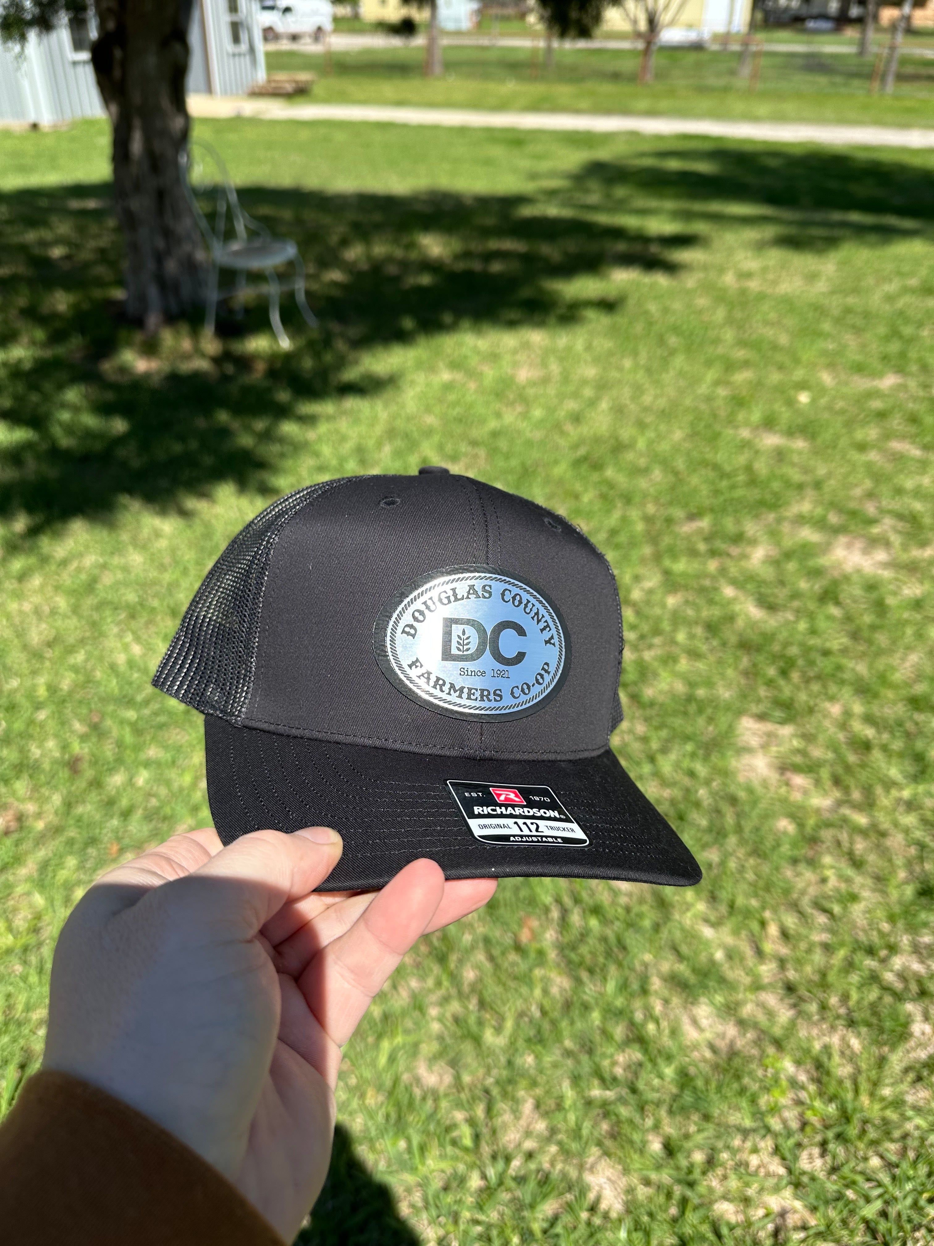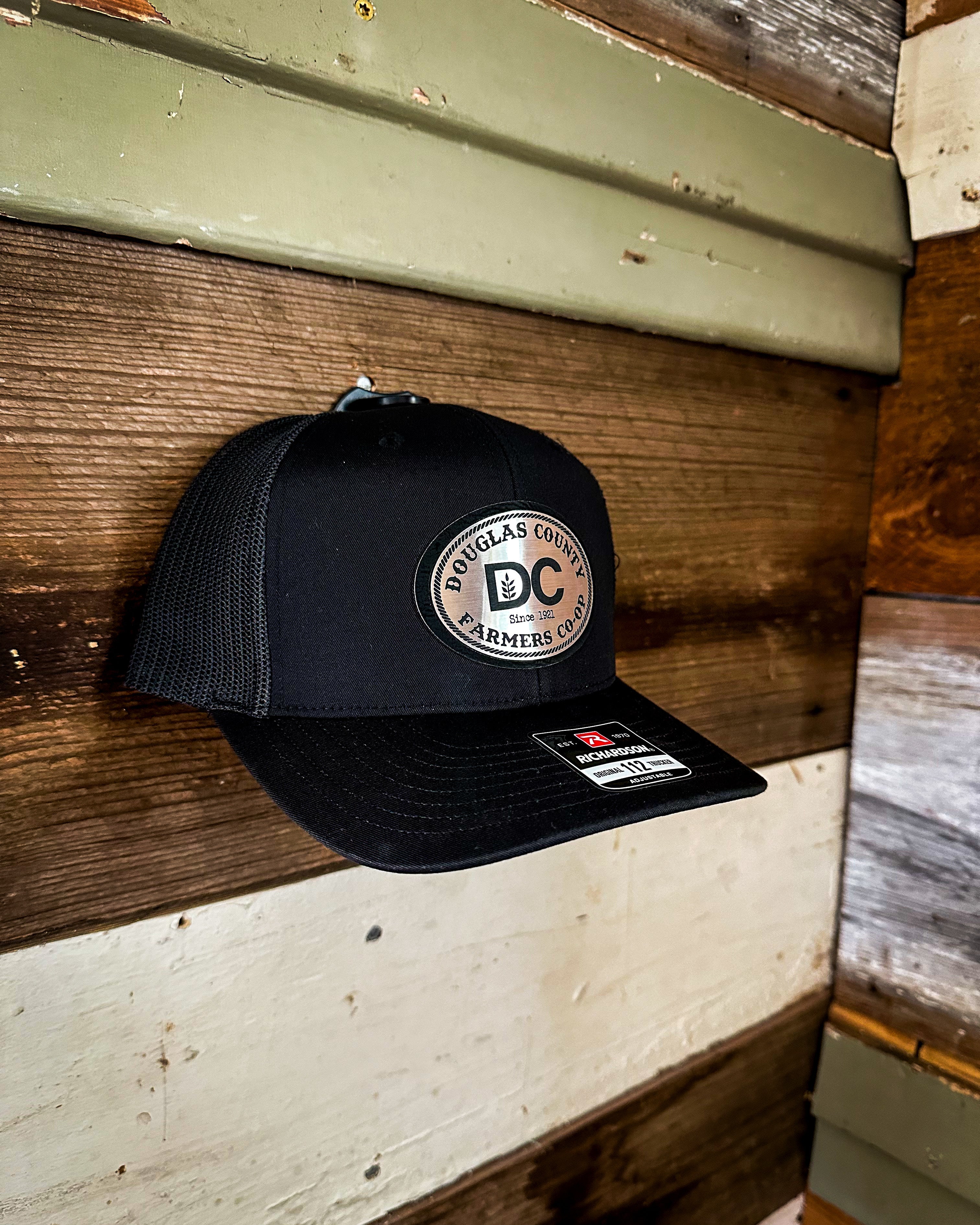 DC CO-OP LOGO Black Leather and Stainless Steel Patch on Black/Black 112 (Set of 12hats)