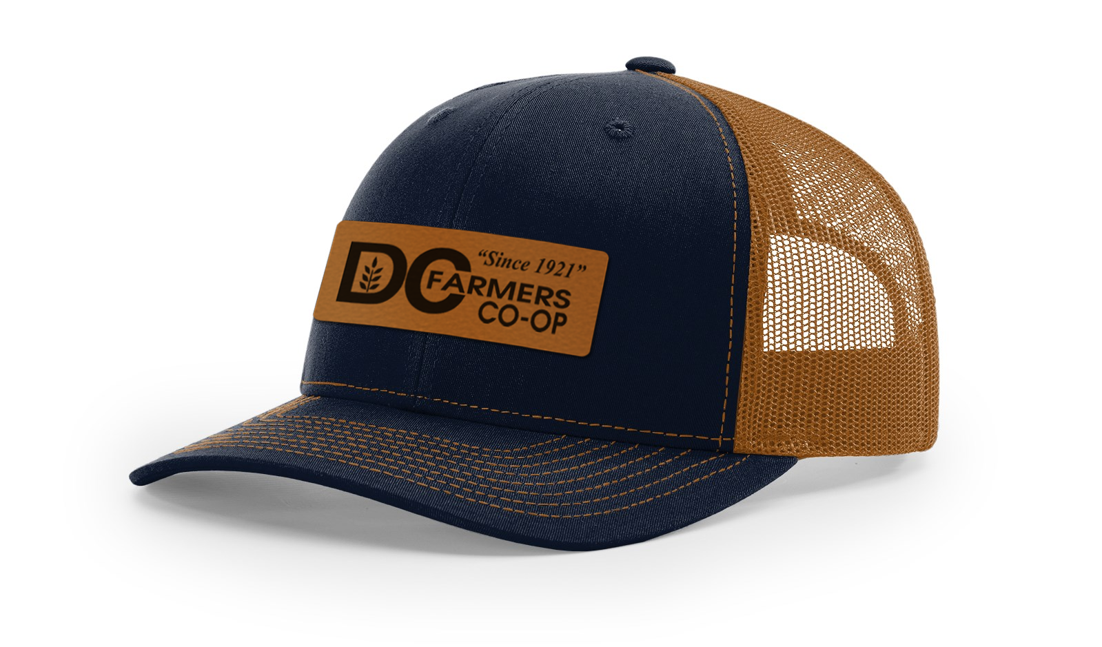 DC CO-OP Logo Rawhide Leather Patch on Navy/Carmel 112 (Set of 12hats)