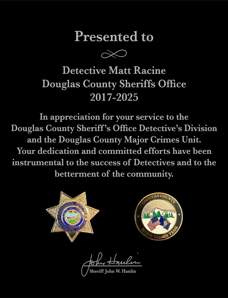 Glass Plaque Presented to Under Sheriff Jeff Frieze