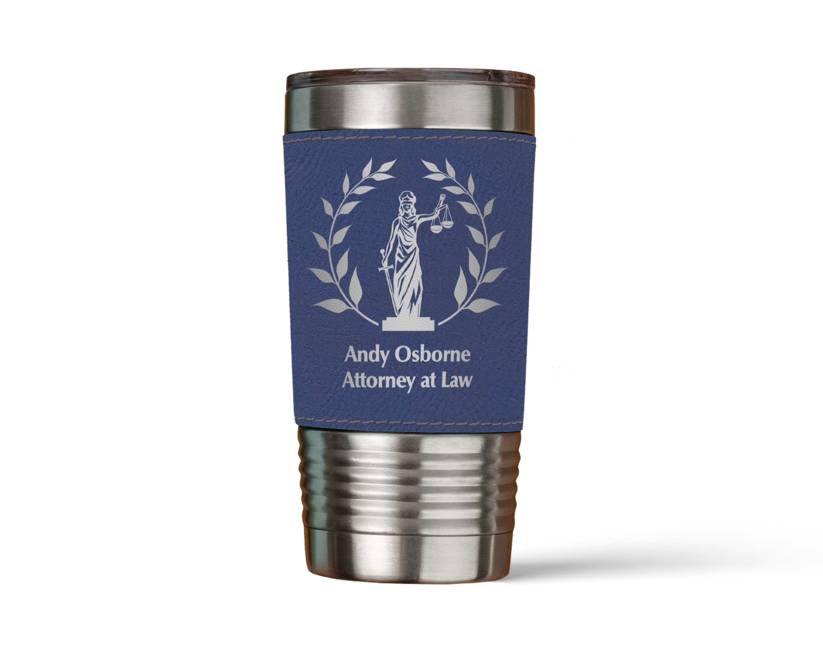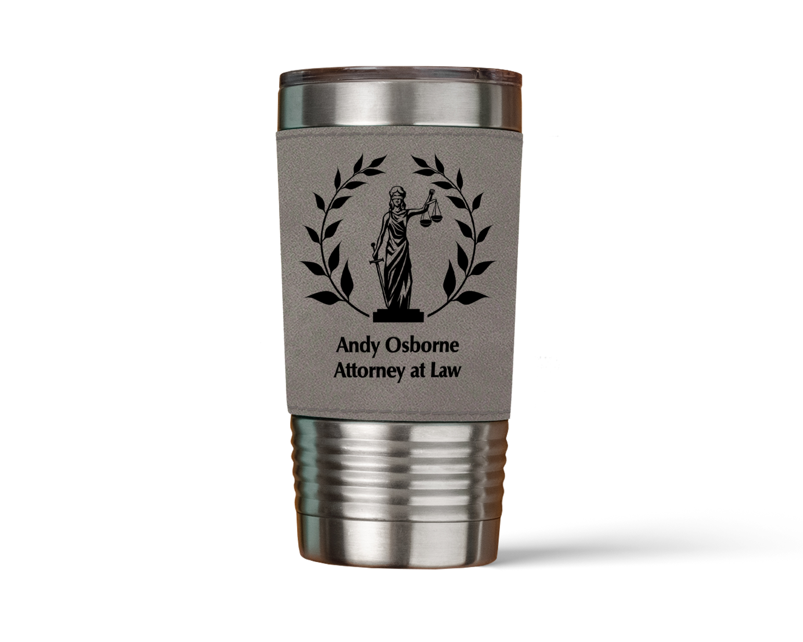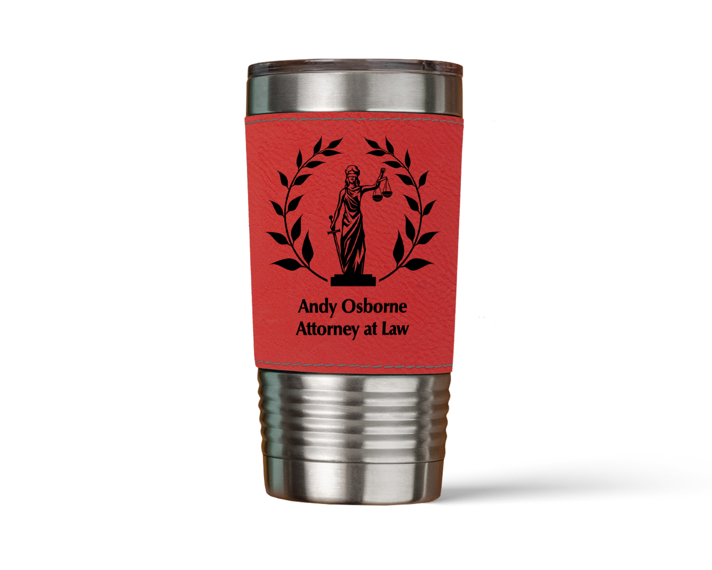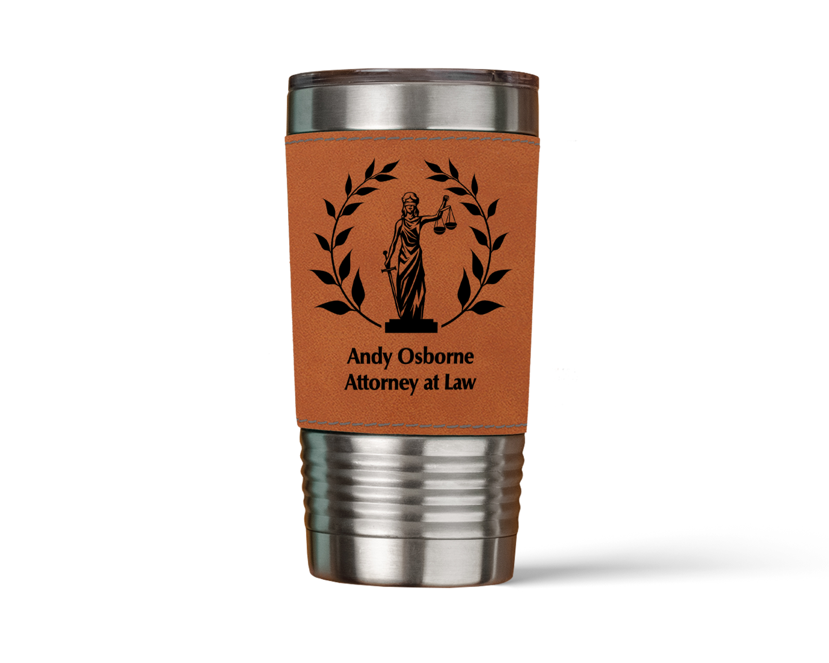 Wrapped in a luxurious leatherette material, this tumbler radiates sophistication and elegance, making a bold statement about your professional identity. The leatherette not only adds a touch of refinement but also provides a comfortable grip. With its eye-catching appearance and durable construction, this tumbler is built to withstand the demands of a lawyer's on-the-go lifestyle.