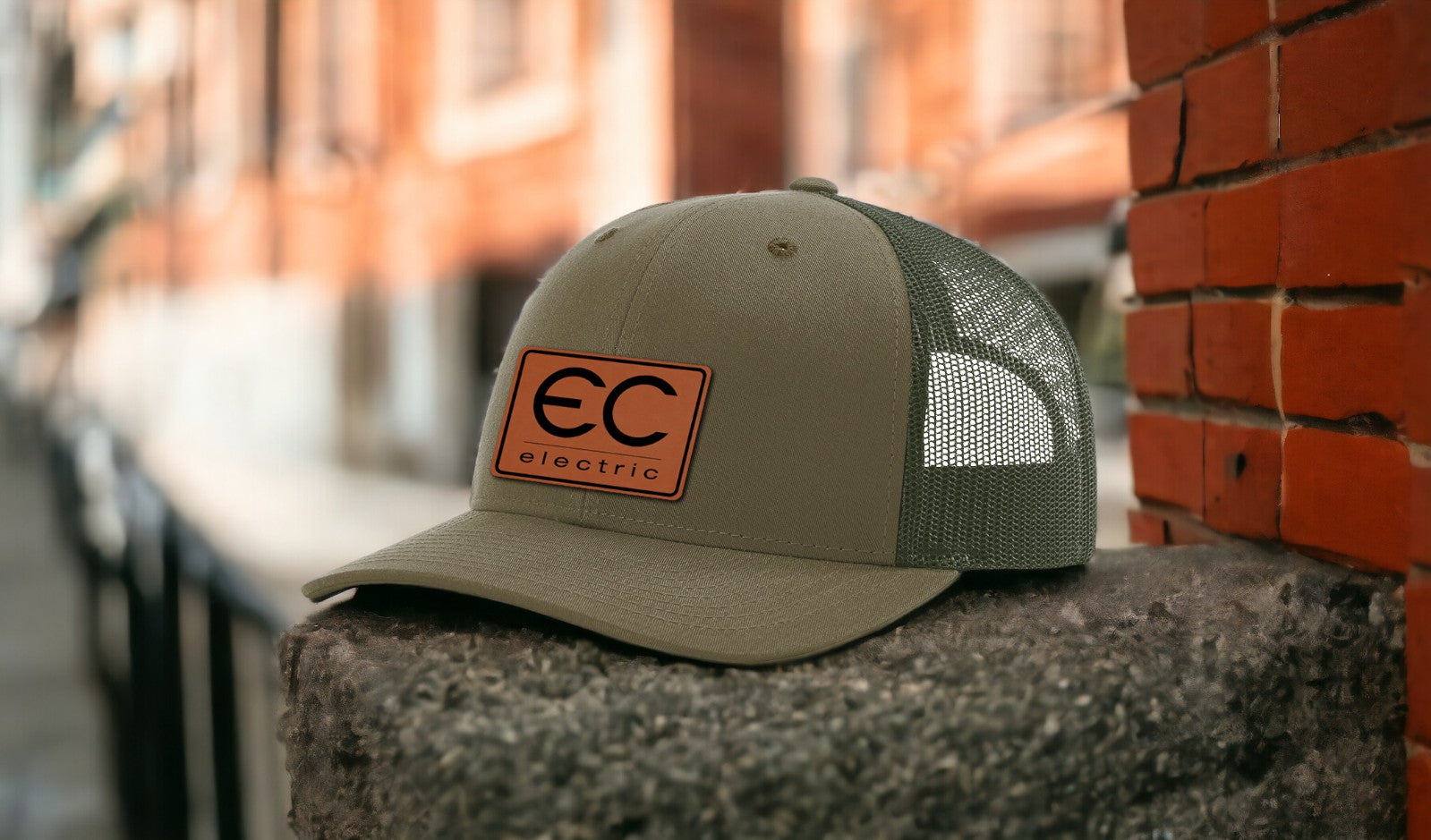 EC Electric Rectangle logo in rawhide leatherette