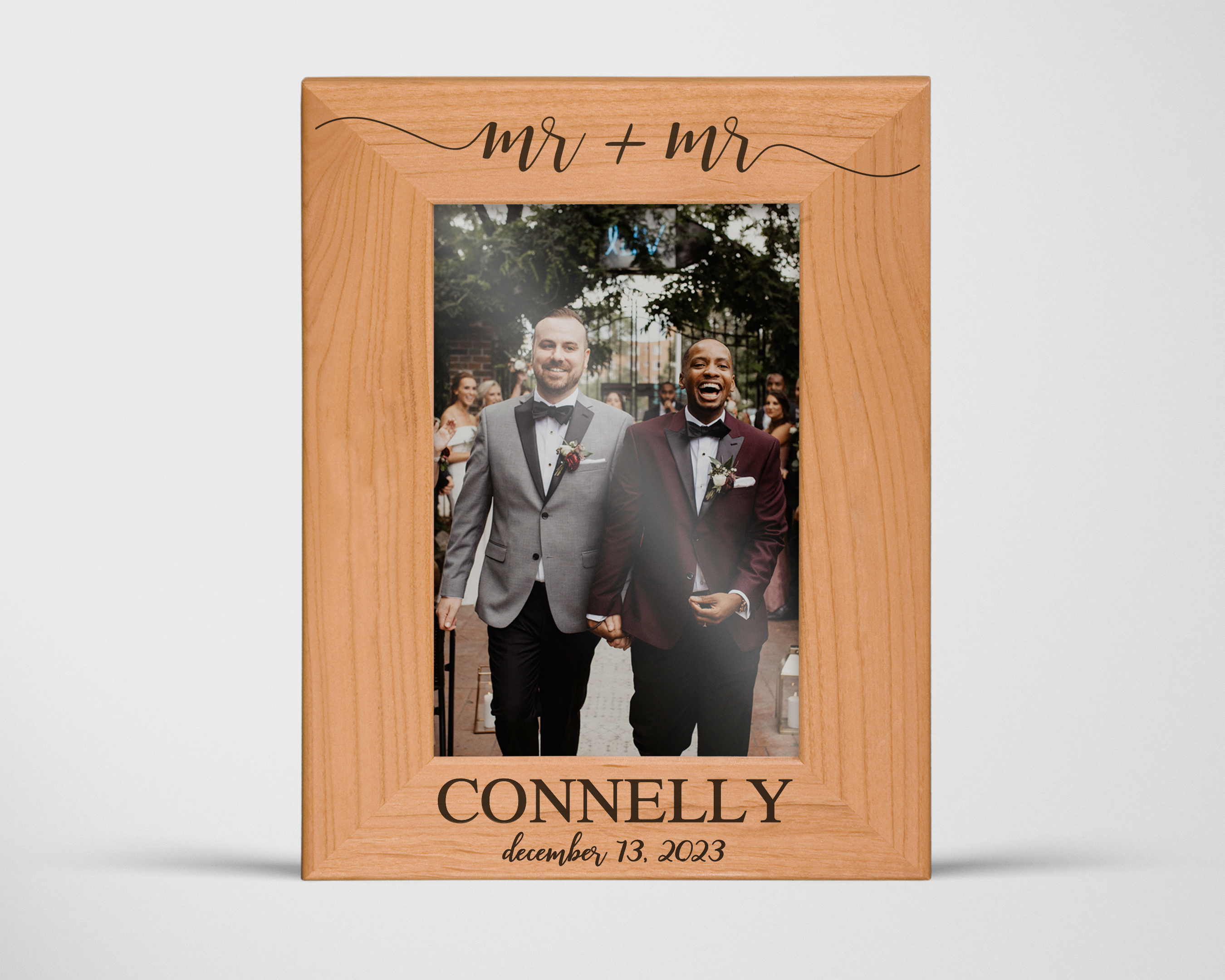 Each frame is engraved to order using the details entered in the personalization fields on this product page.