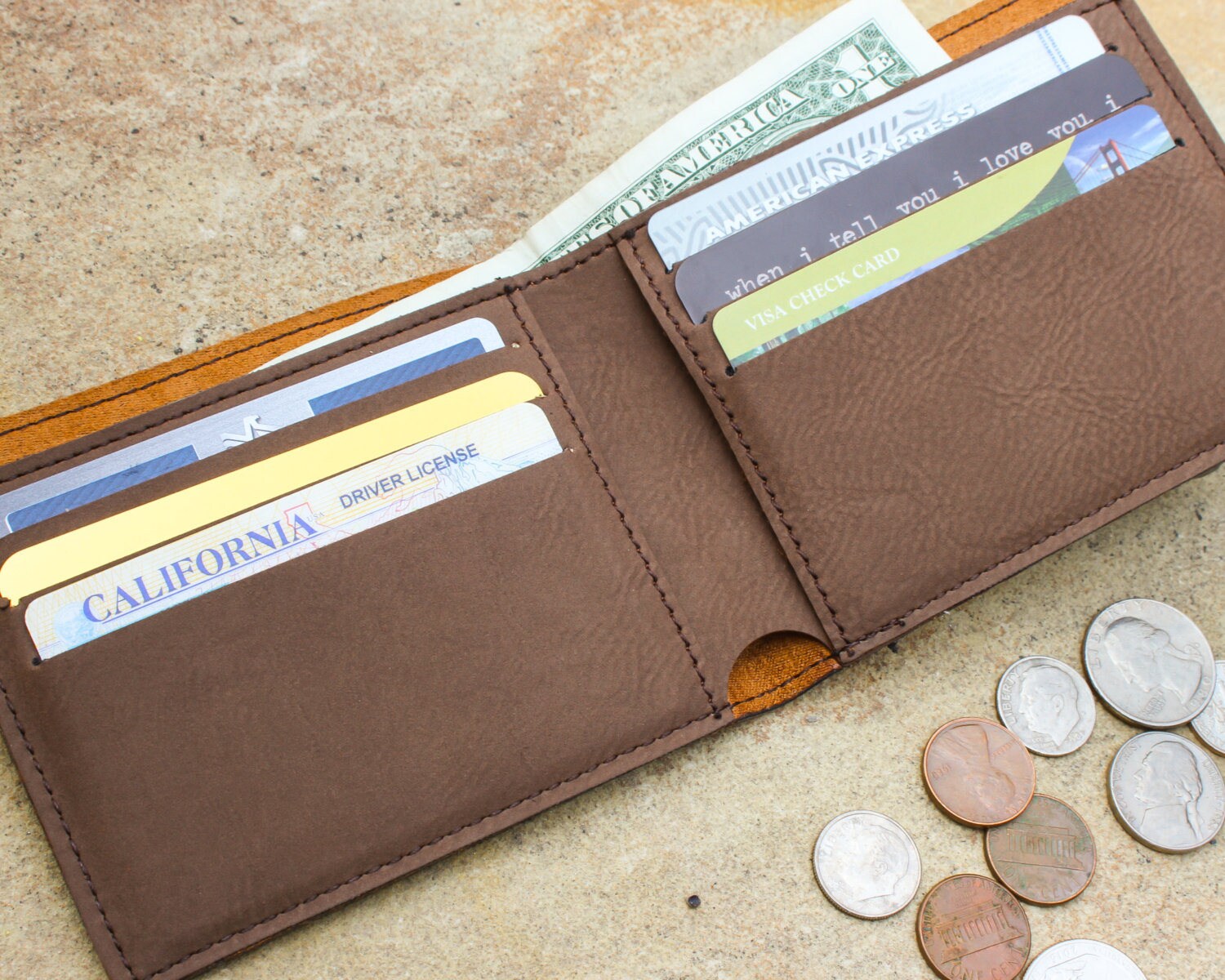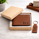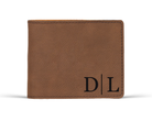 Mens personalized monogram leather bifold wallet engraved with initials. Perfect for Father's Day or Dad's Birthday or Christmas stocking stuffer.
