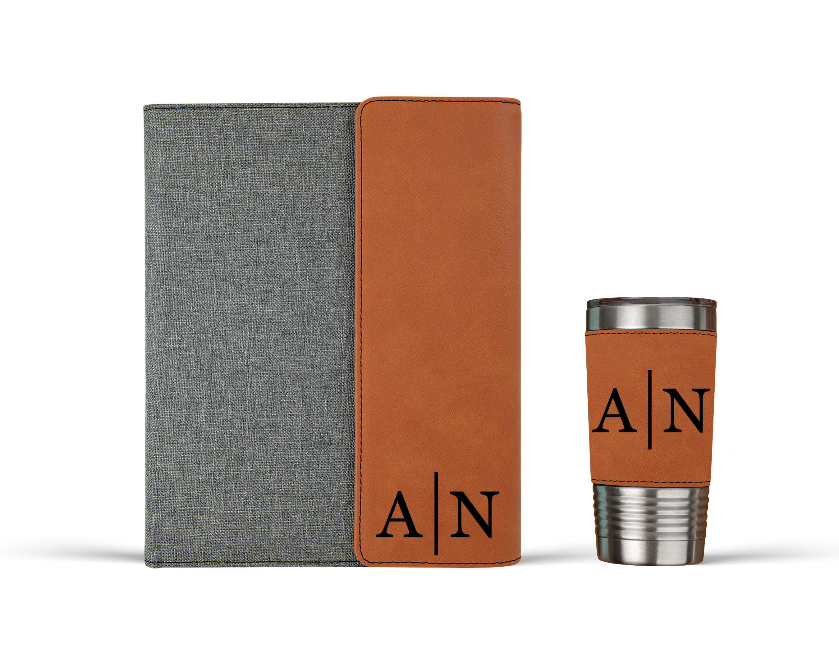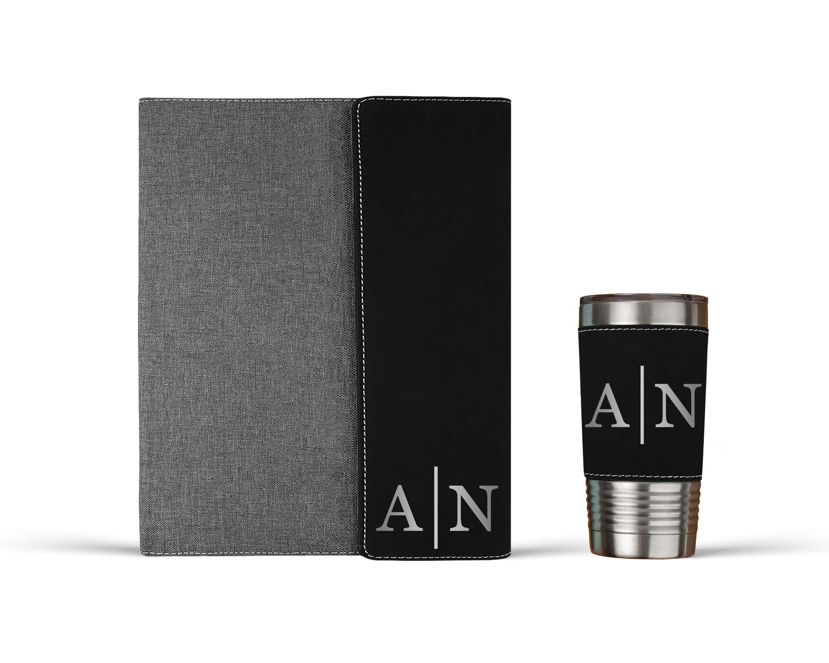 The combo gift set includes a matching 20oz insulated tumbler that keeps drinks hot or cold on the go. Engraved to complement the portfolio perfectly. This is a gift that anyone will be proud to carry.