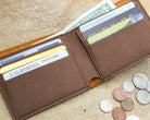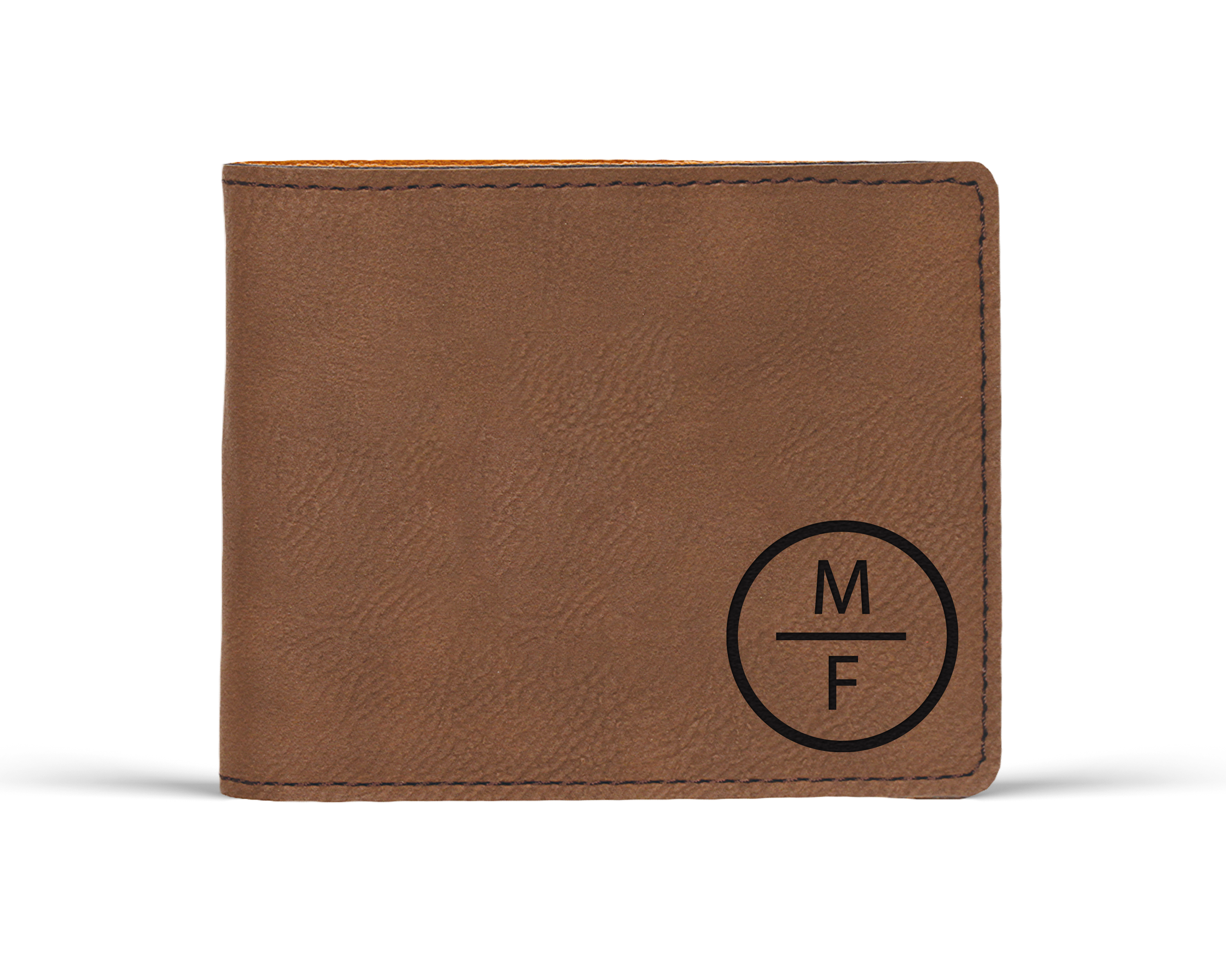 Mens personalized monogram leather bifold wallet engraved with initials. Perfect for Father's Day or Dad's Birthday or Christmas stocking stuffer.