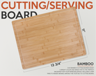 Measuring 13 3/4" x 8 3/4" x 3/8", this bamboo cutting board provides ample space for all your slicing, dicing, and fileting needs. Each cutting board is laser engraved, ensuring a crisp and clean finish. While the natural grain of the wood may cause slight variations in engraving, the design remains bold and detailed. Remember to use the reverse side for cutting to keep the engraving looking its best.