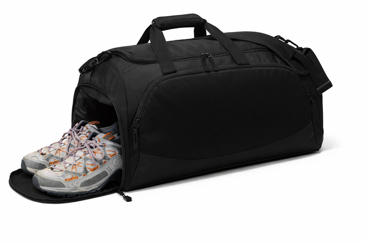 FEATURE-RICH ORGANIZATION Our gym bag is designed with the busy coach in mind. It features a zippered side shoe compartment, perfect for separating dirty shoes or cleats from your clothes or even carrying a football. The bag’s spacious compartments ensure everything has its place, making it a must-have for coaches on the go.