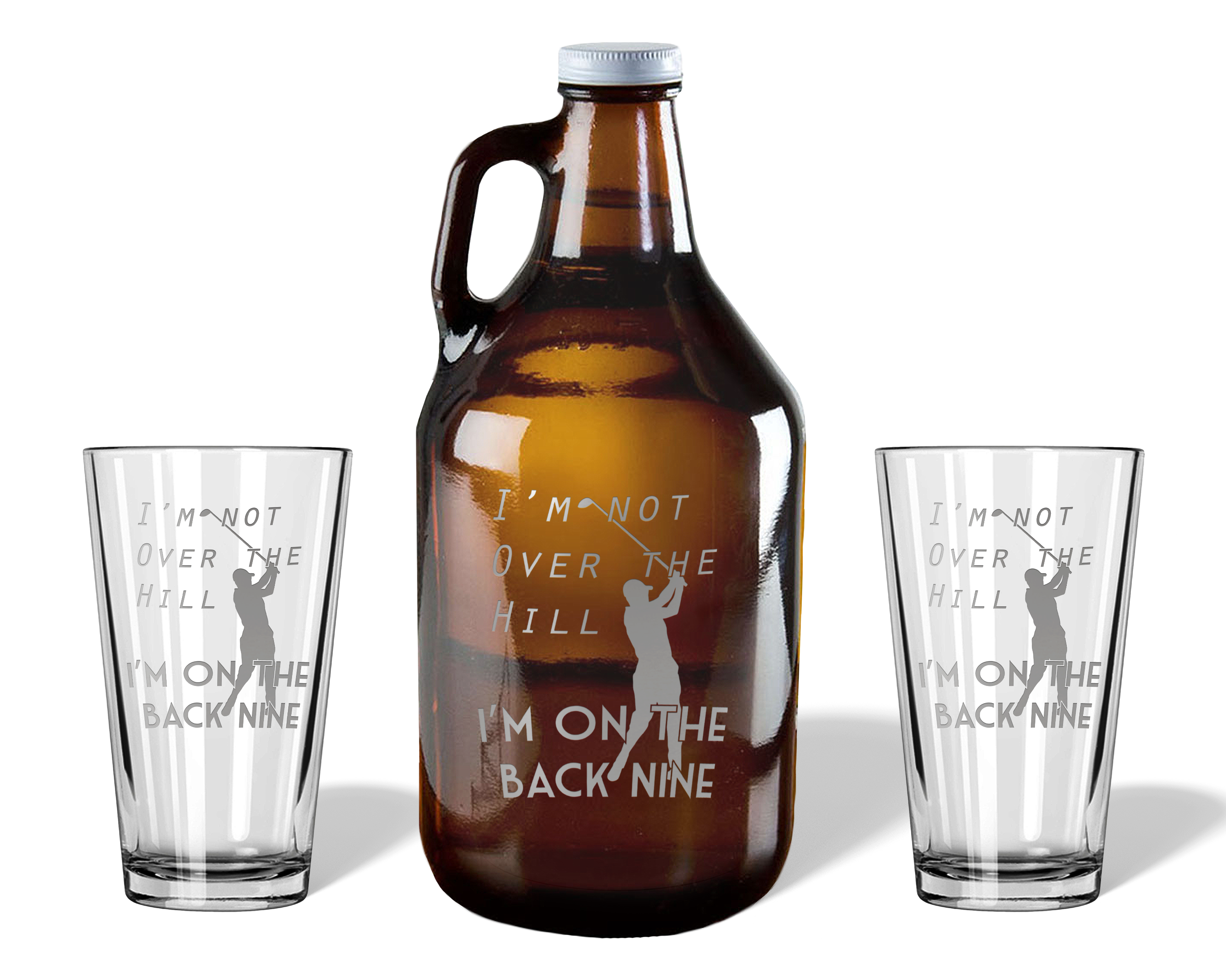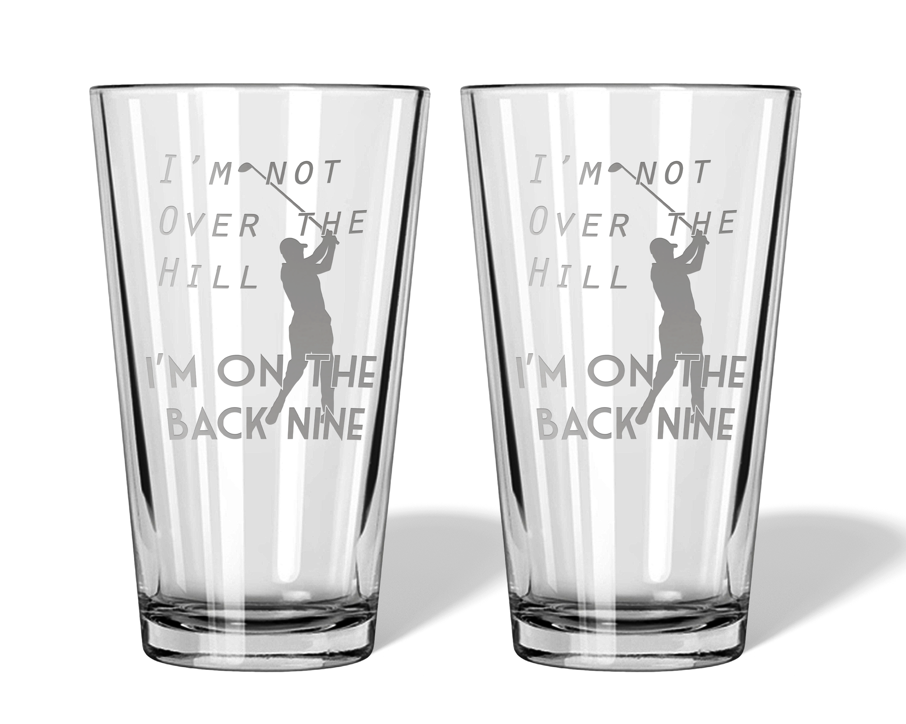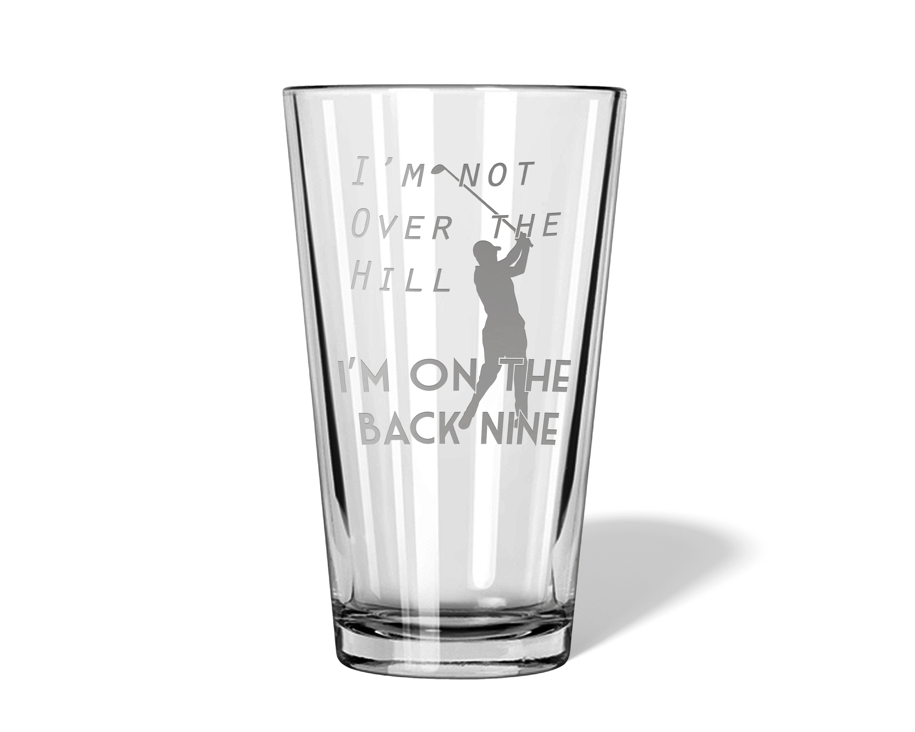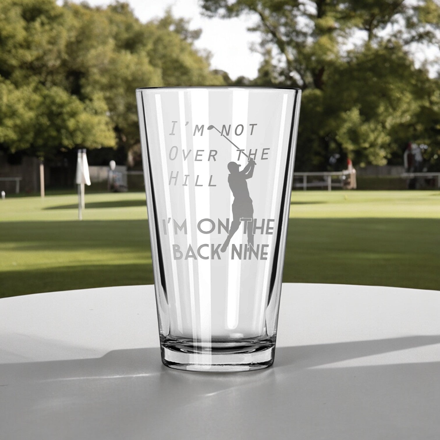Funny Retirement Pint Glass – “I’m Not Over the Hill, I’m on the Back Nine” Engraved