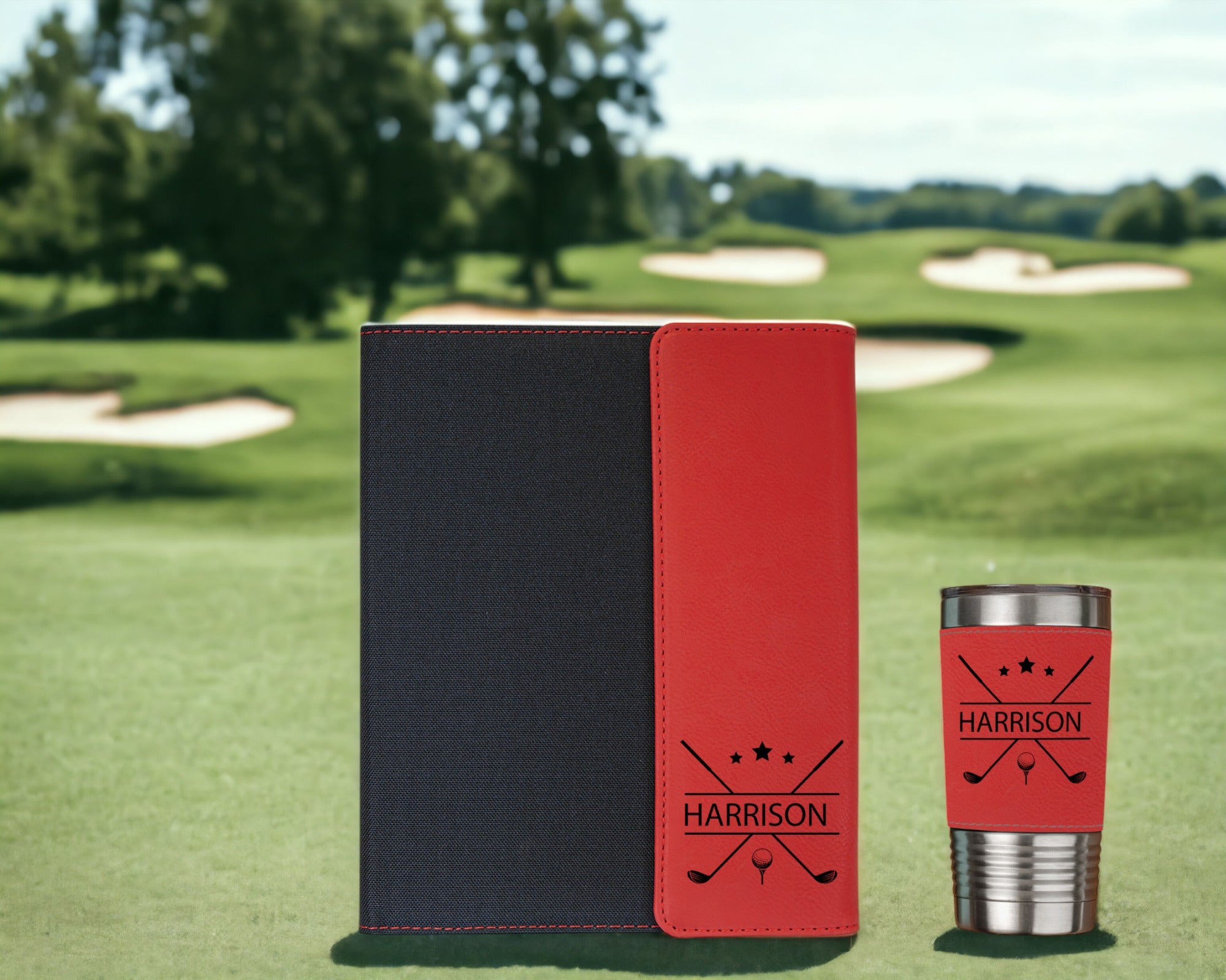 Personalized Golf Crossed Clubs Portfolio | 20oz Tumbler Gift Set