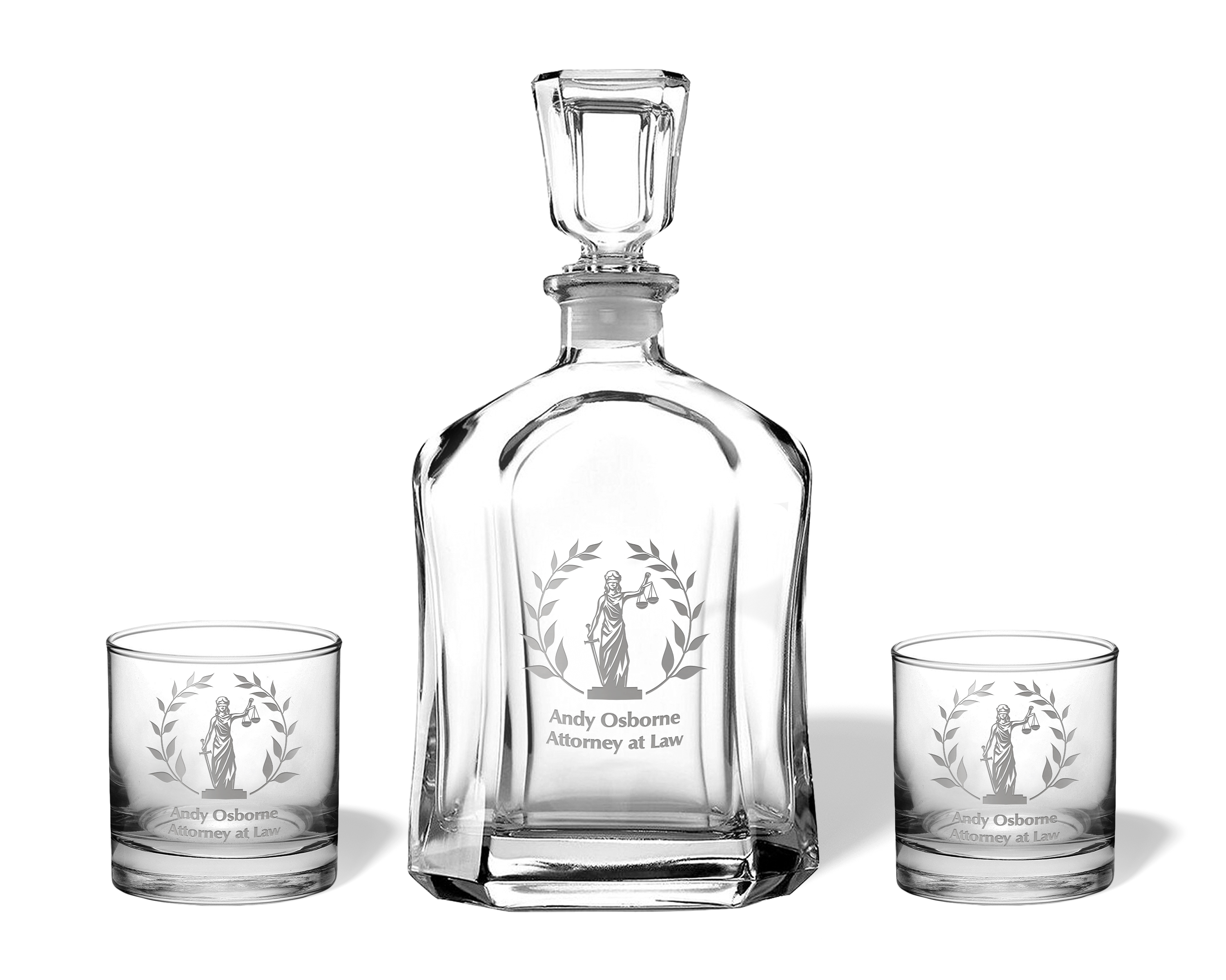 ORDER NOW Celebrate the achievements of the law professionals in your life with our Scales of Justice or Lady Justice engraved glassware. Order now and give a gift that’s both meaningful and memorable.