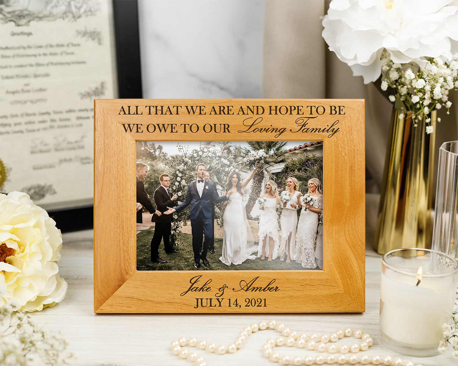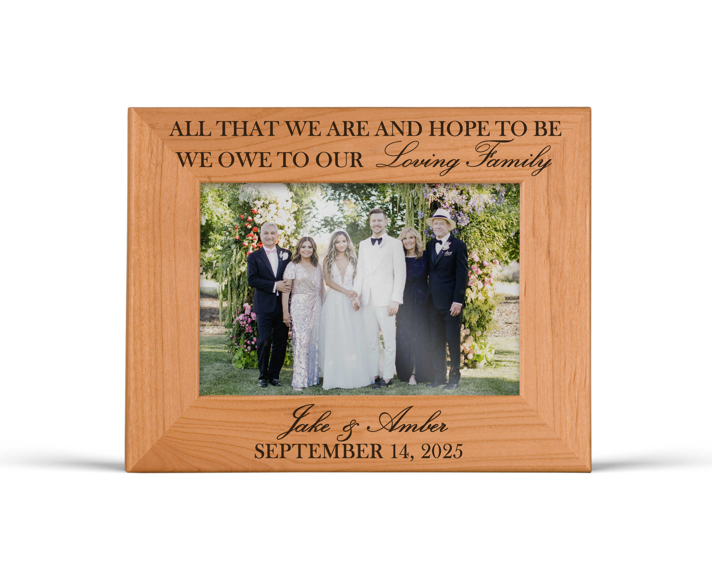 This wood picture frame is a meaningful way for a couple to honor the family who supported, guided, and stood beside them throughout their journey. It’s a heartfelt keepsake created to express gratitude on a wedding day filled with love and celebration.