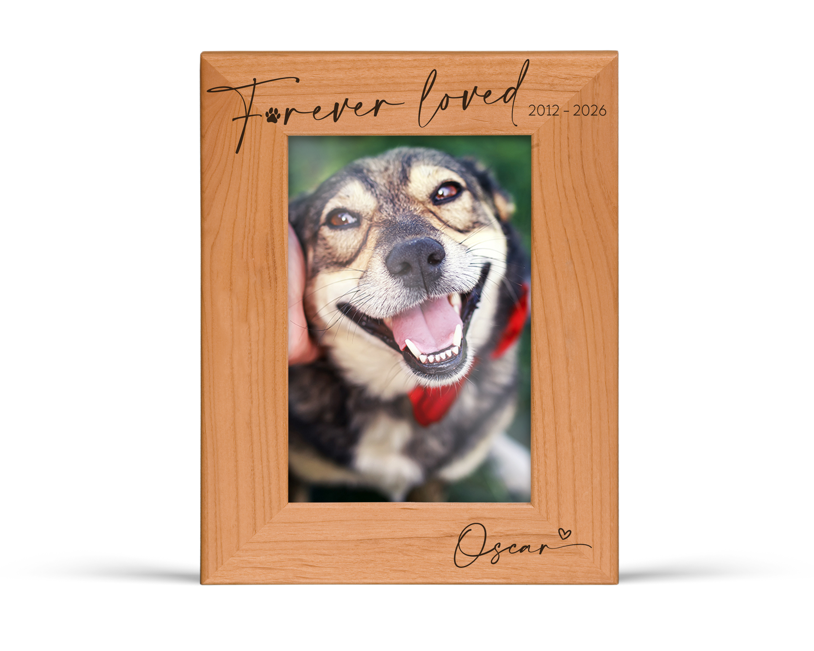 Personalized Pet Memorial Wood Frame – Engraved Pet Loss Keepsake