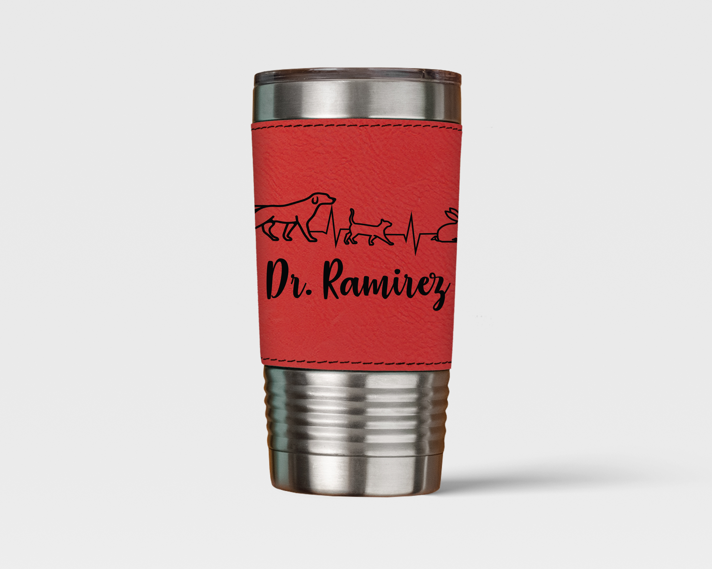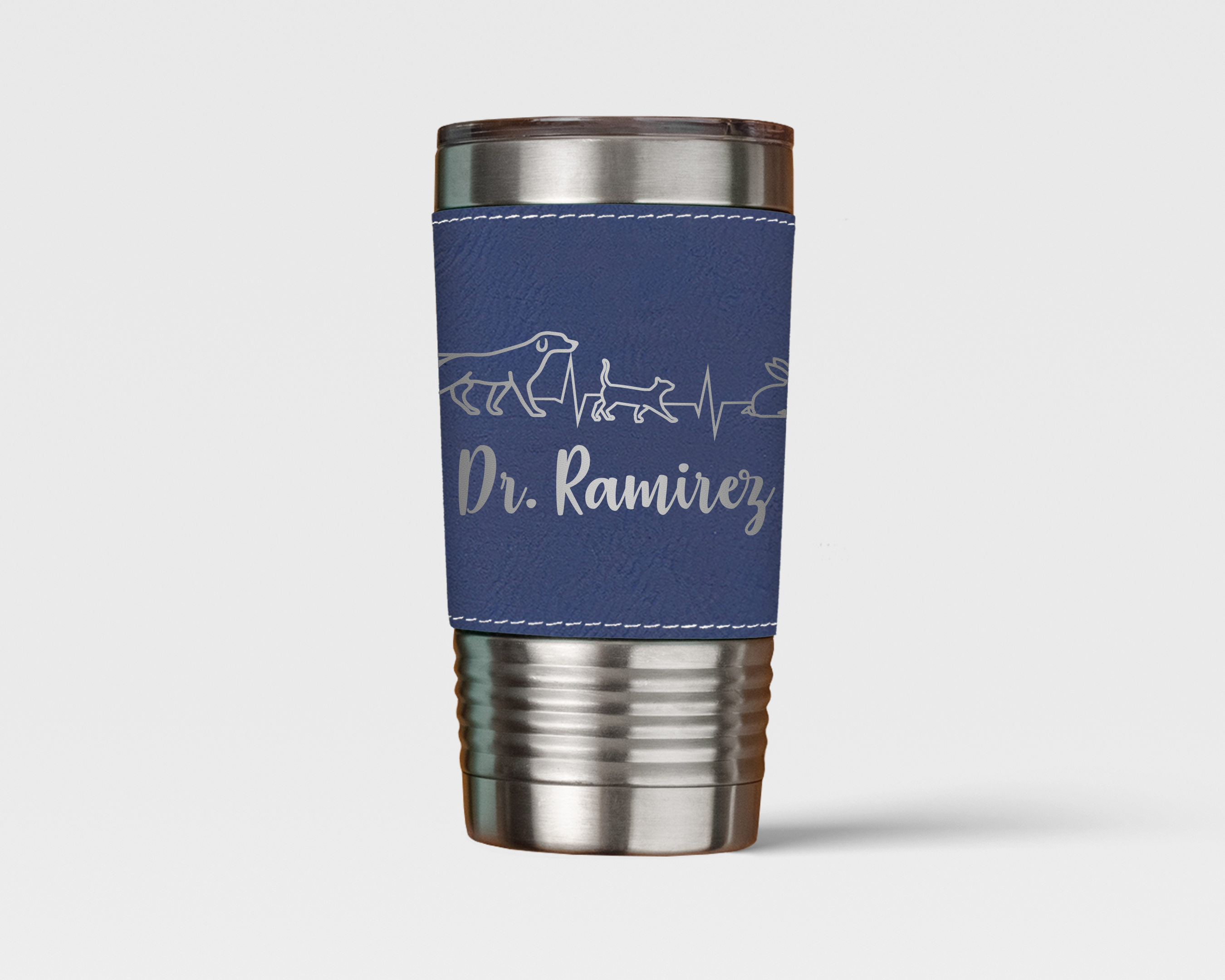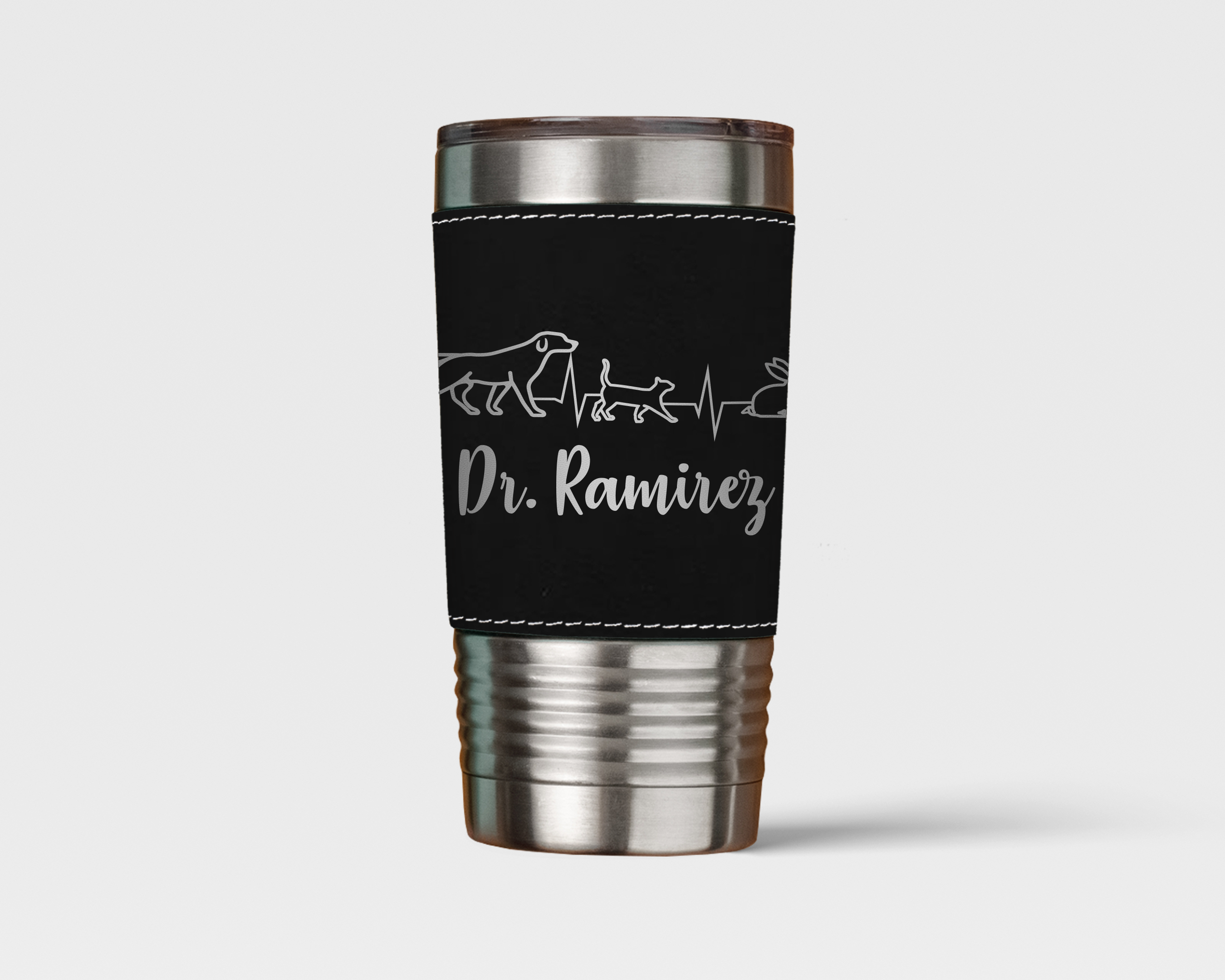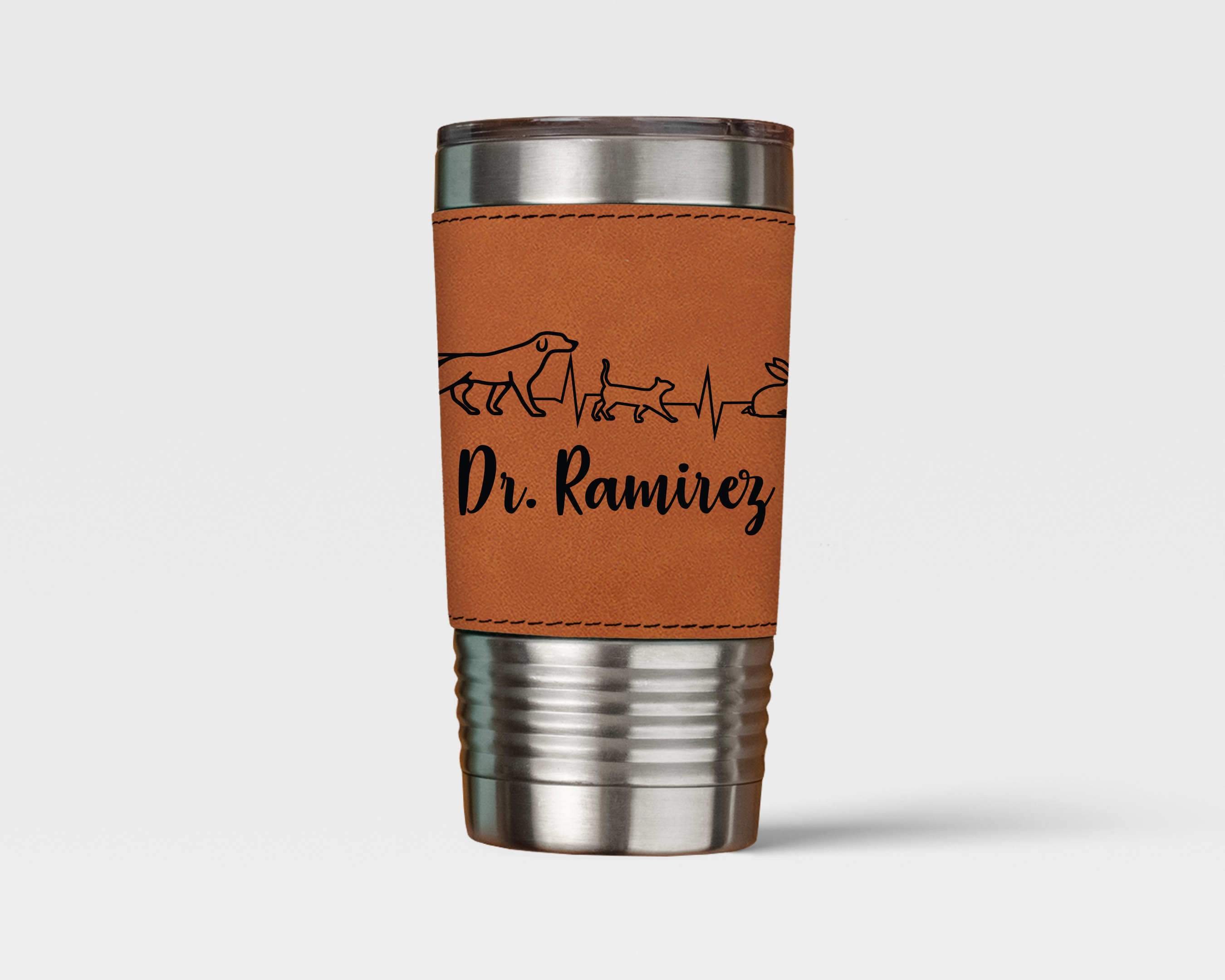 Wrapped in a smooth leatherette sleeve, this tumbler offers a comfortable grip and a polished, professional look suited for clinic days, meetings, or time on the road. Built to handle the pace of a busy veterinary lifestyle, it combines durability with refined style.