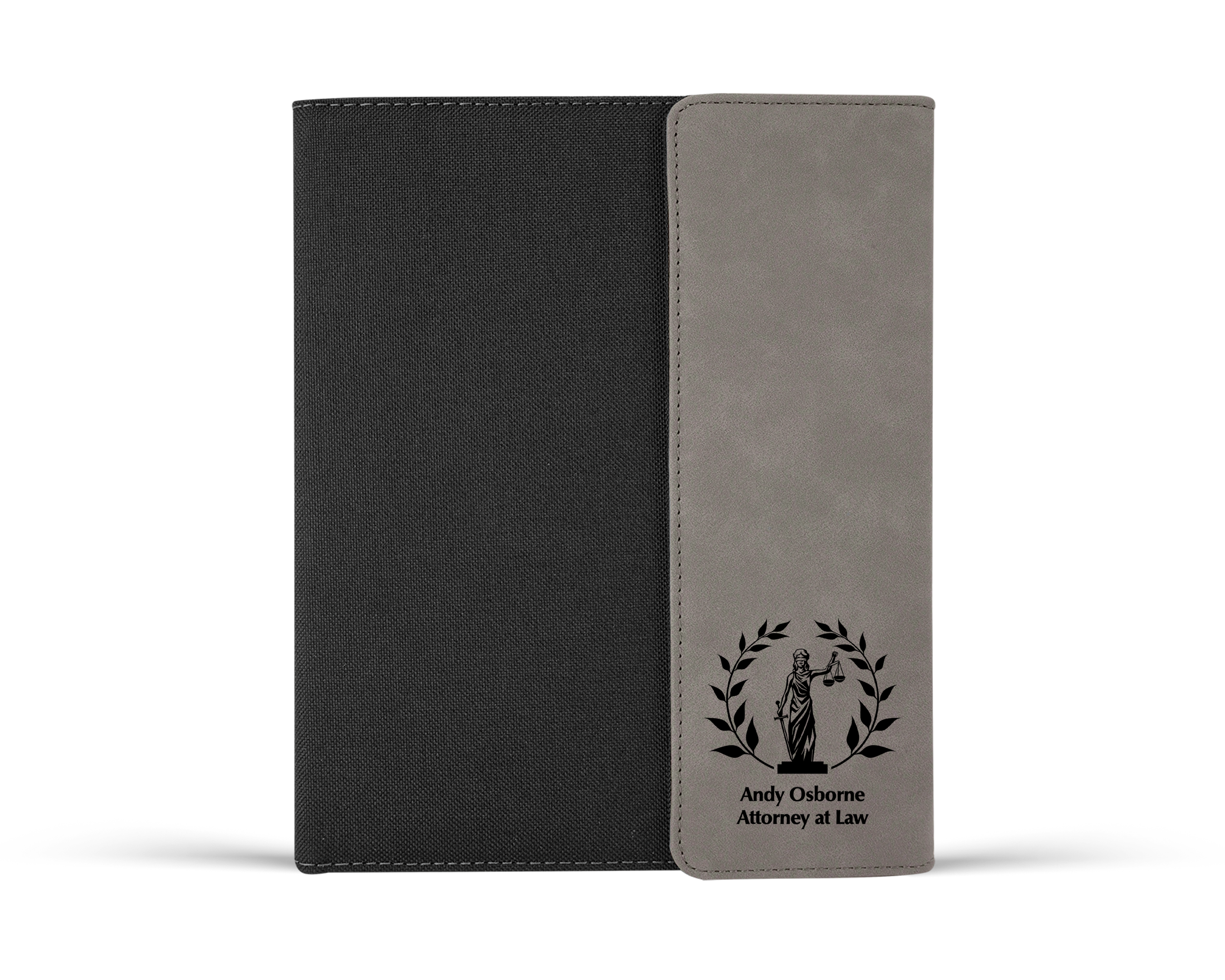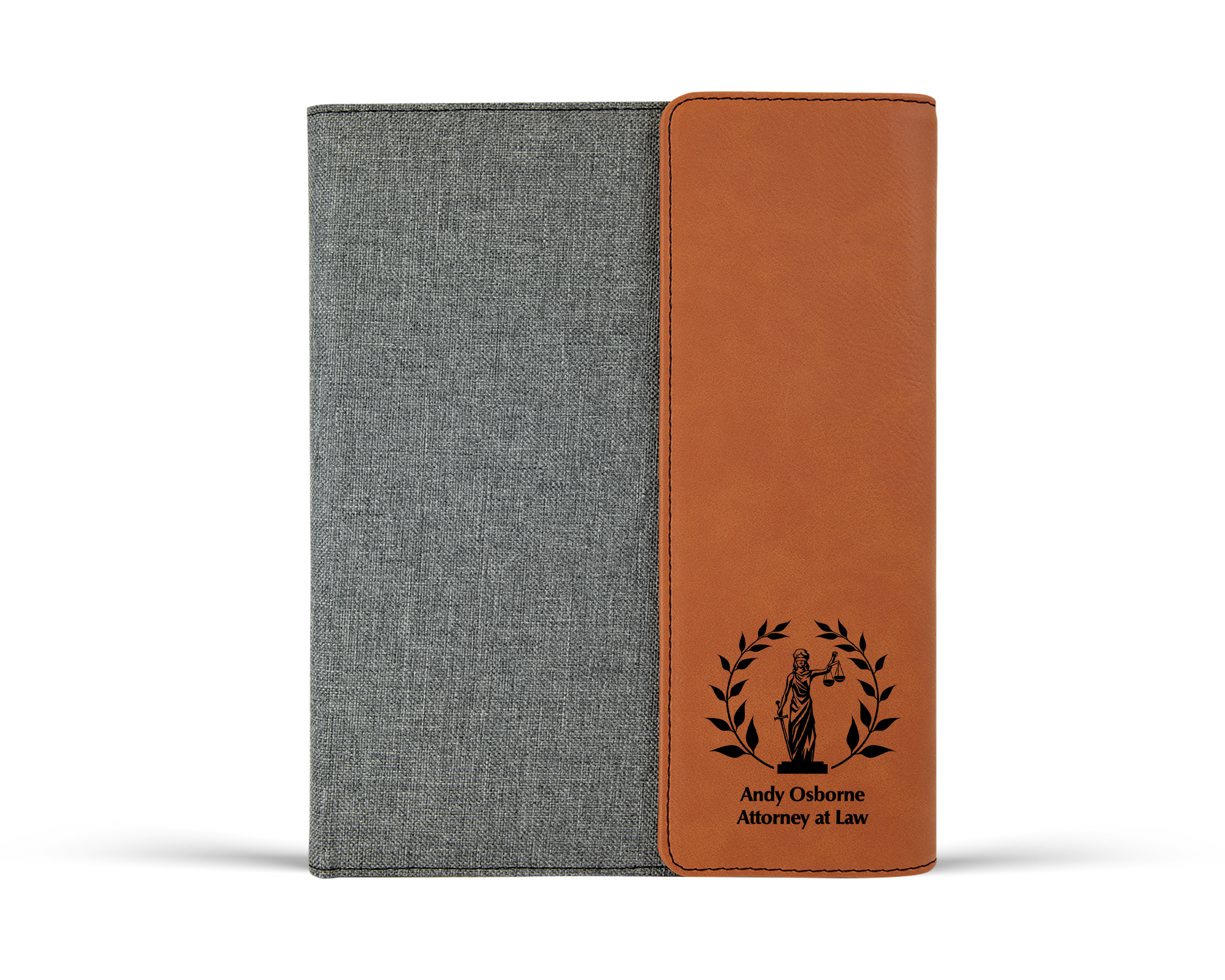 PERSONALIZED AND ELEGANT, our Engraved Lady Justice Leatherette Padfolio is a distinguished gift personalized with the attorney's name, law firm, or title. Ideal for law school acceptance celebrations, law student gifts, law school graduations, paralegal acknowledgments, or as a thoughtful attorney thank-you gift.