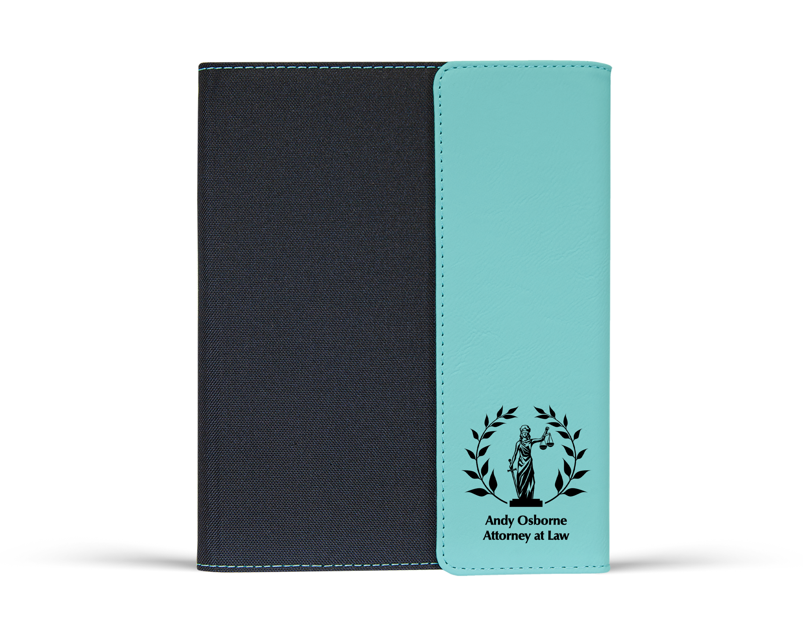 Engraved Lady Justice Portfolio - Leather & Canvas Padfolio