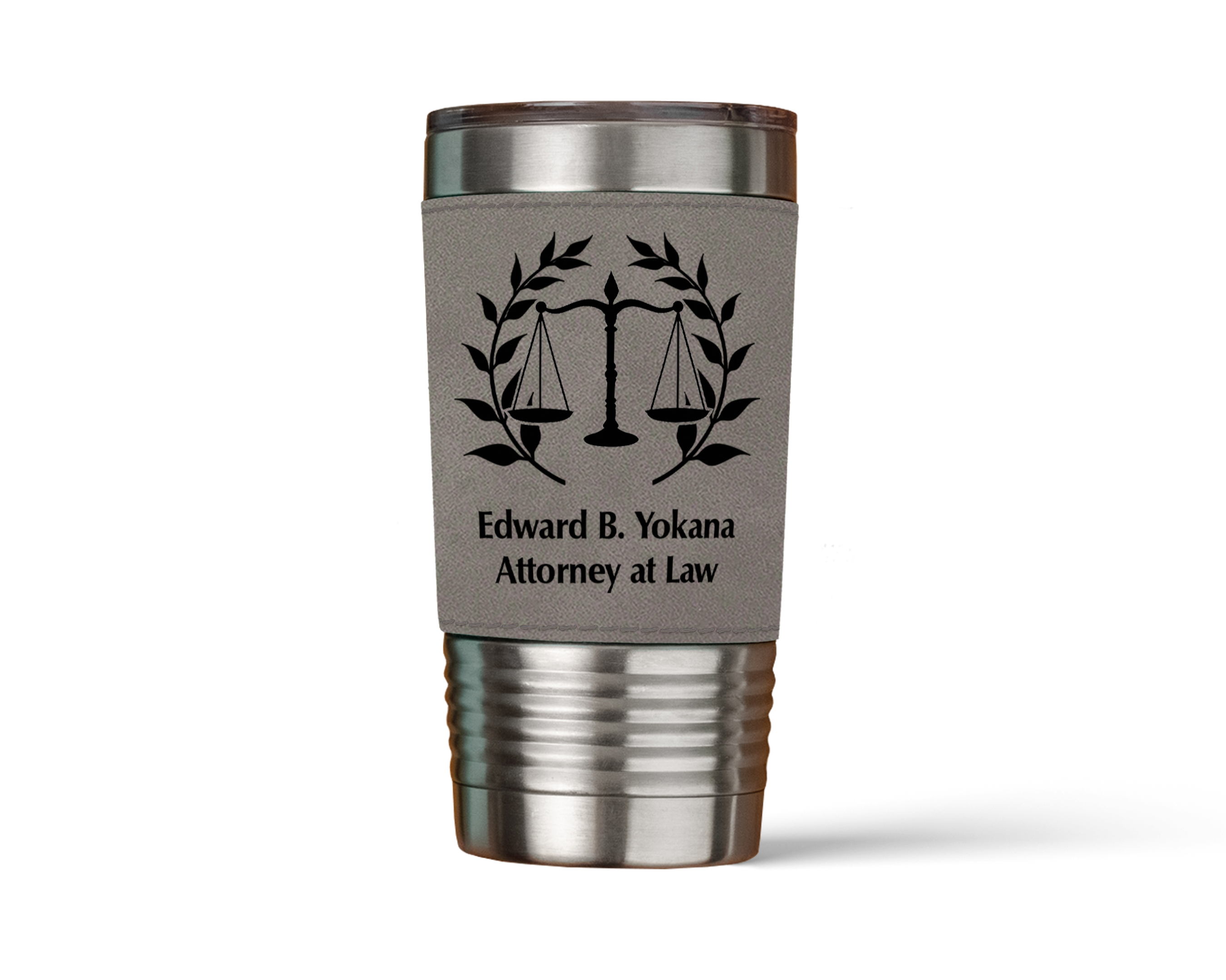 Wrapped in a luxurious leatherette material, this tumbler radiates sophistication and elegance, making a bold statement about your professional identity. The leatherette not only adds a touch of refinement but also provides a comfortable grip. With its eye-catching appearance and durable construction, this tumbler is built to withstand the demands of a lawyer's on-the-go lifestyle.
