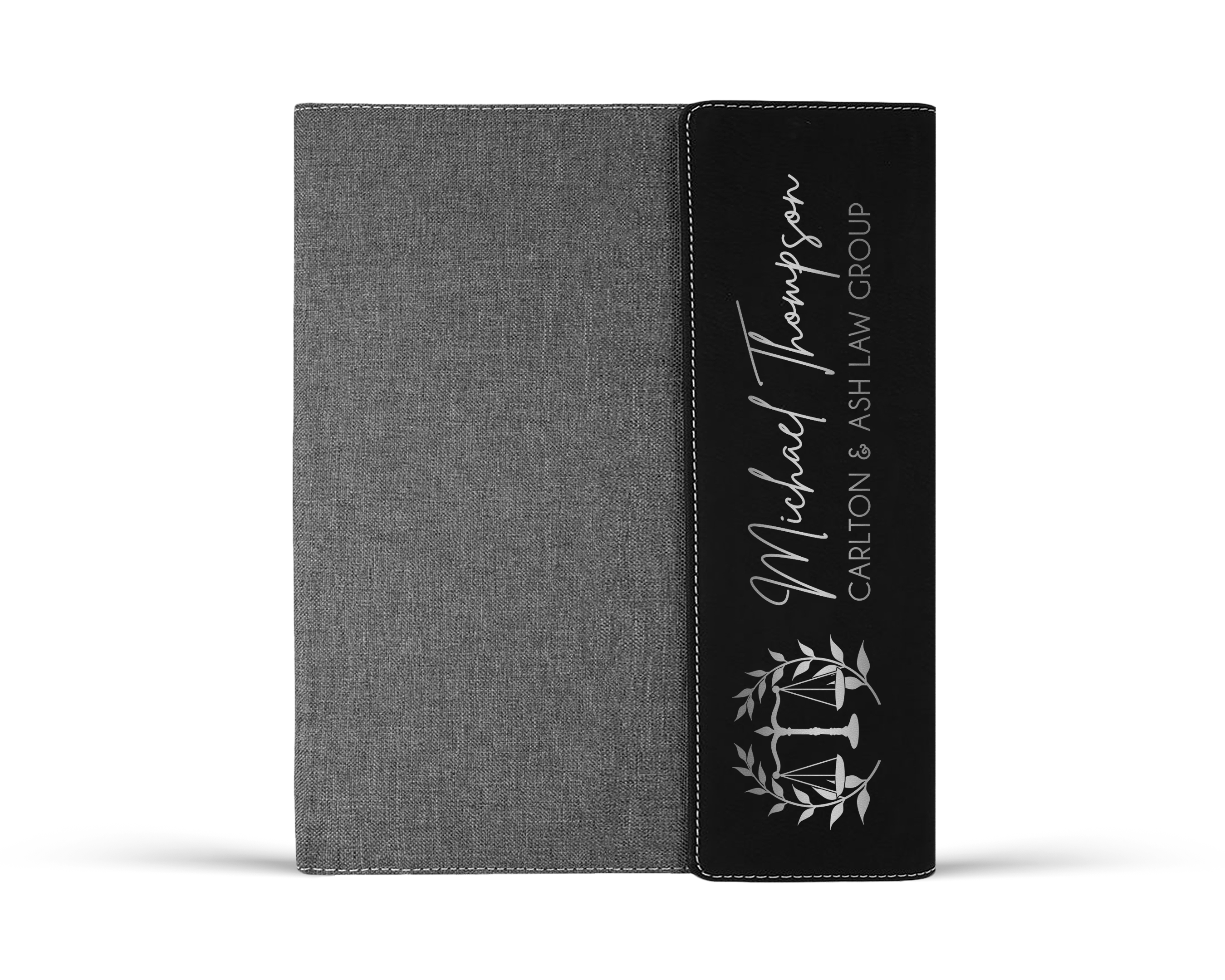 Scales Justice engraved leatherette padfolio personalized with the attorney name, law firm or title. An exceptional law school acceptance gift, law student gift, law school graduation gift, paralegal gift, lawyer gift for men or attorney thank you gift.