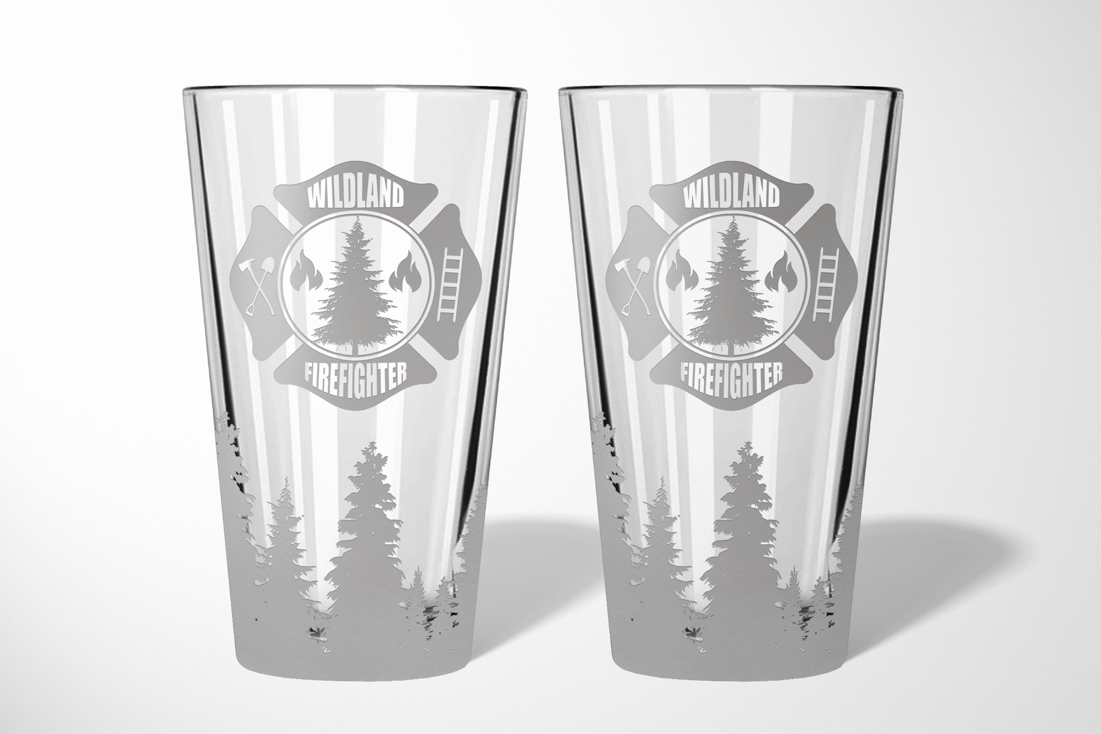 Our remarkable Wildland Fire Pint Glass, created to honor the bravery and dedication of wildland firefighters is expertly engraved. It makes a perfect gift for firefighter appreciation, as well as for special occasions such as graduations or retirement. The Wildland Fire Maltese Cross emblem proudly takes center stage symbolizing the spirit and commitment of these courageous individuals. Wrapping completely around the glass is a captivating forest scene, illustrating the serene beauty of the wilderness they protect.
