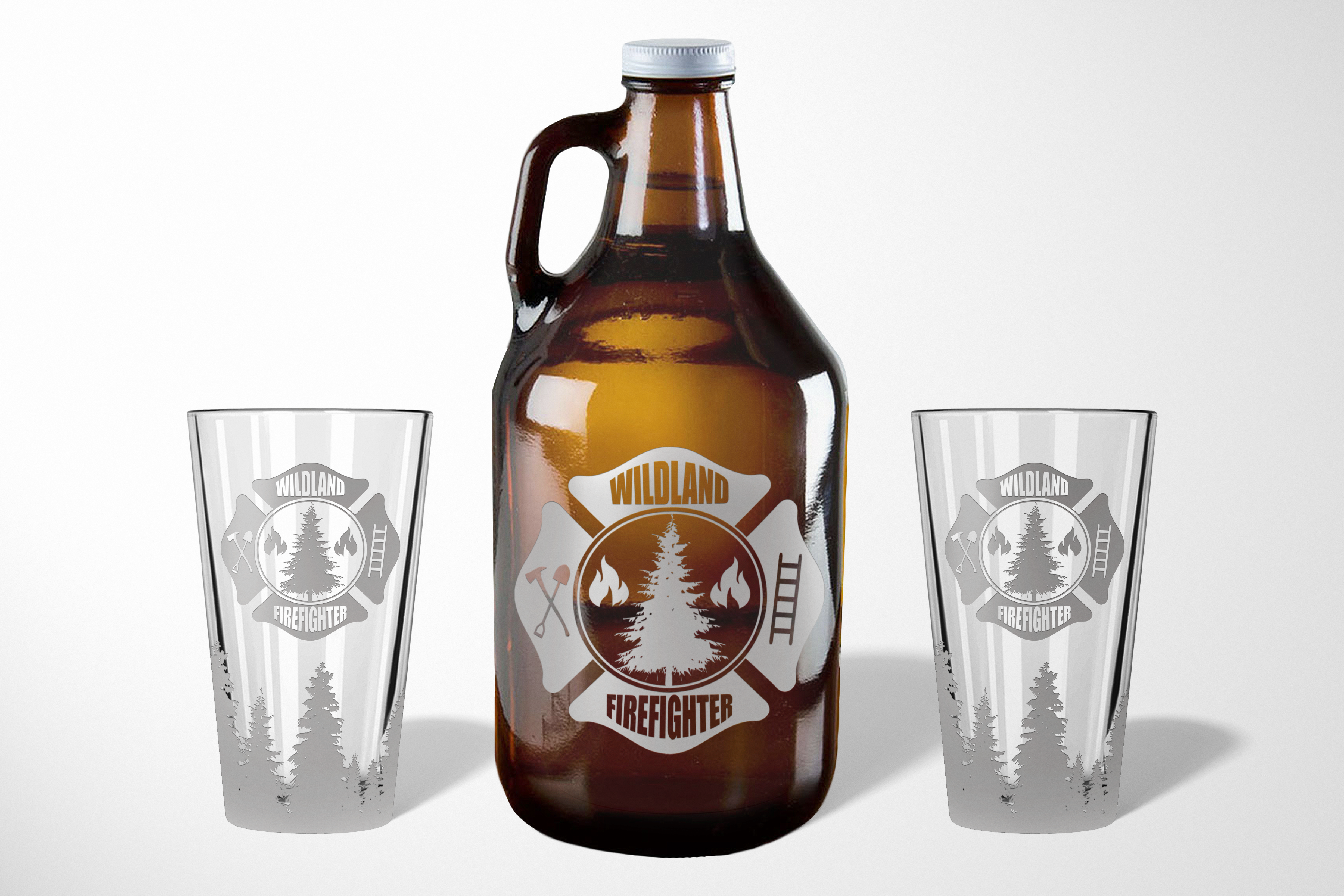 To provide an even more extraordinary gifting experience, we offer an upgrade option to our exclusive Growler Gift Box Set. This set includes two Wildland Fire Pint Glasses and a 64 oz amber growler, also engraved with the Wildland Fire Maltese Cross emblem. This growler is perfect for storing and transporting your favorite beverages, completing this exceptional collection.