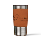 Materials: Double-walled, vacuum-insulated stainless steel tumbler with vegan leather sleeve