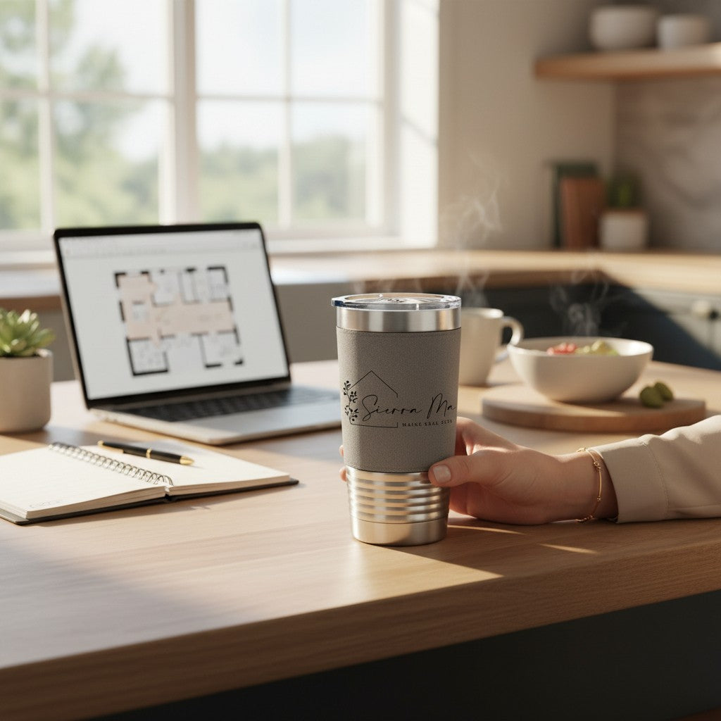 Perfect for morning coffee, long days of showings, or time at the office, this tumbler is made for daily use and also makes a thoughtful personalized thank-you or recognition gift for agents, brokers, and office staff.