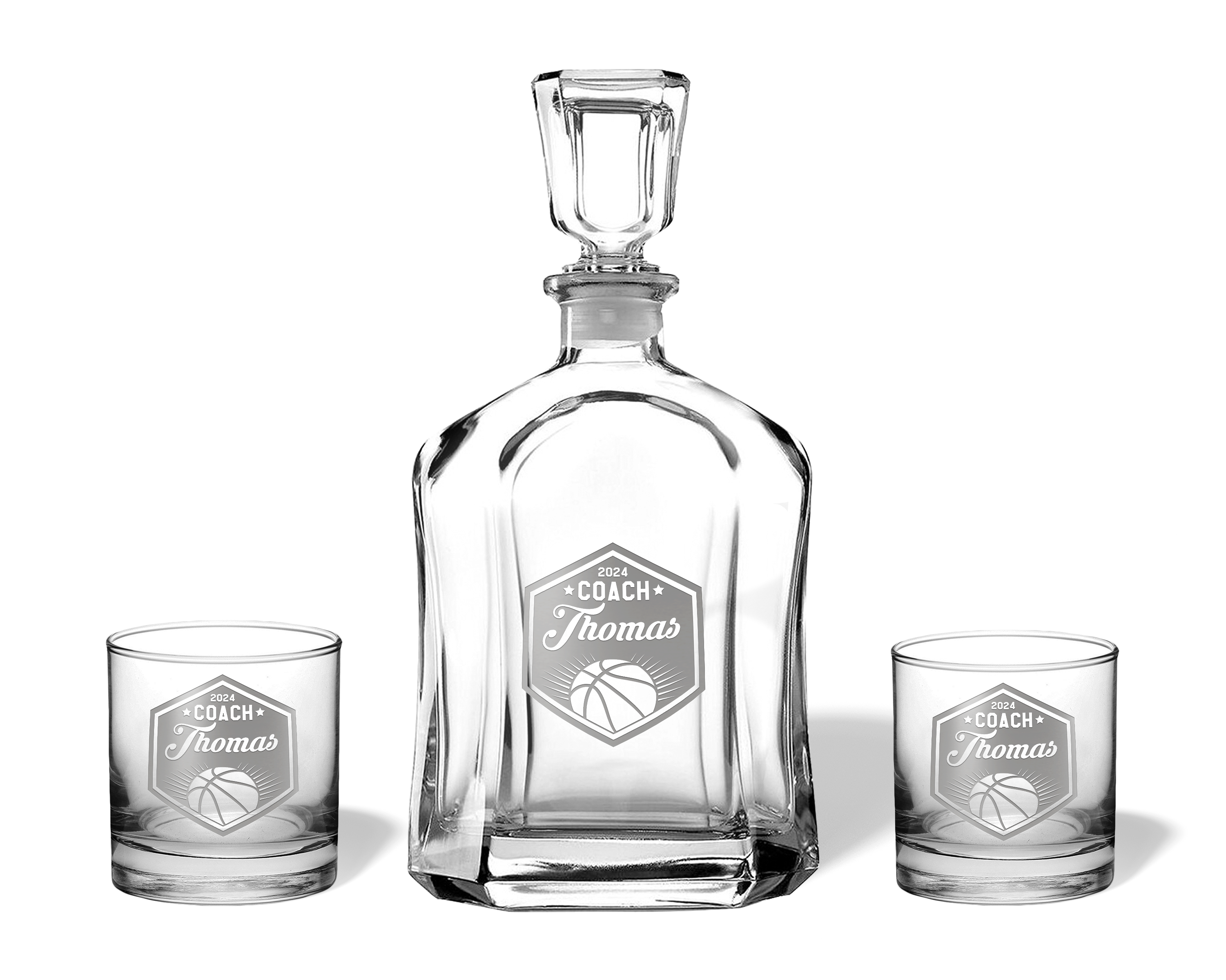 Personalized Basketball Coach Hexagon Glass – Engraved & Gift Boxed