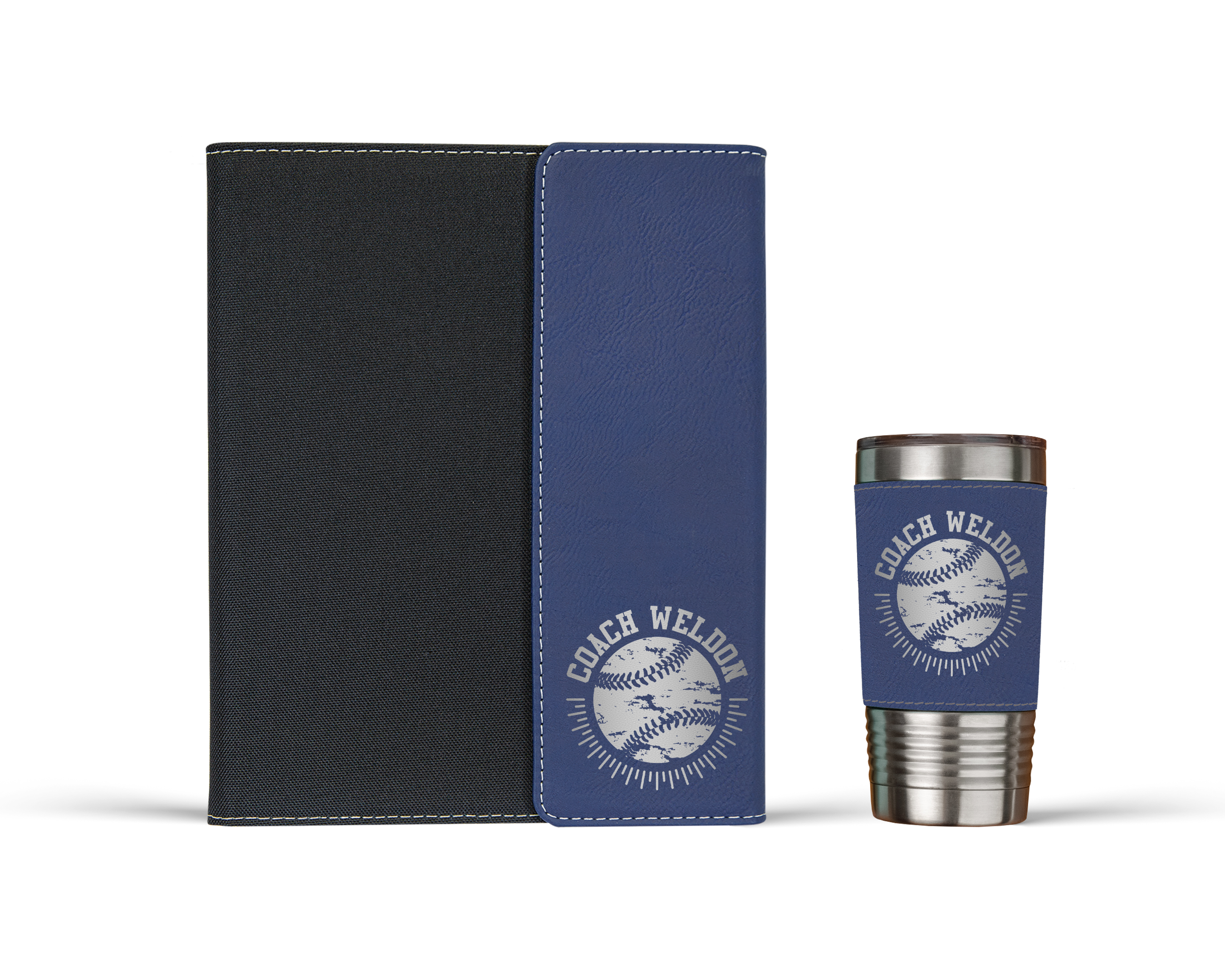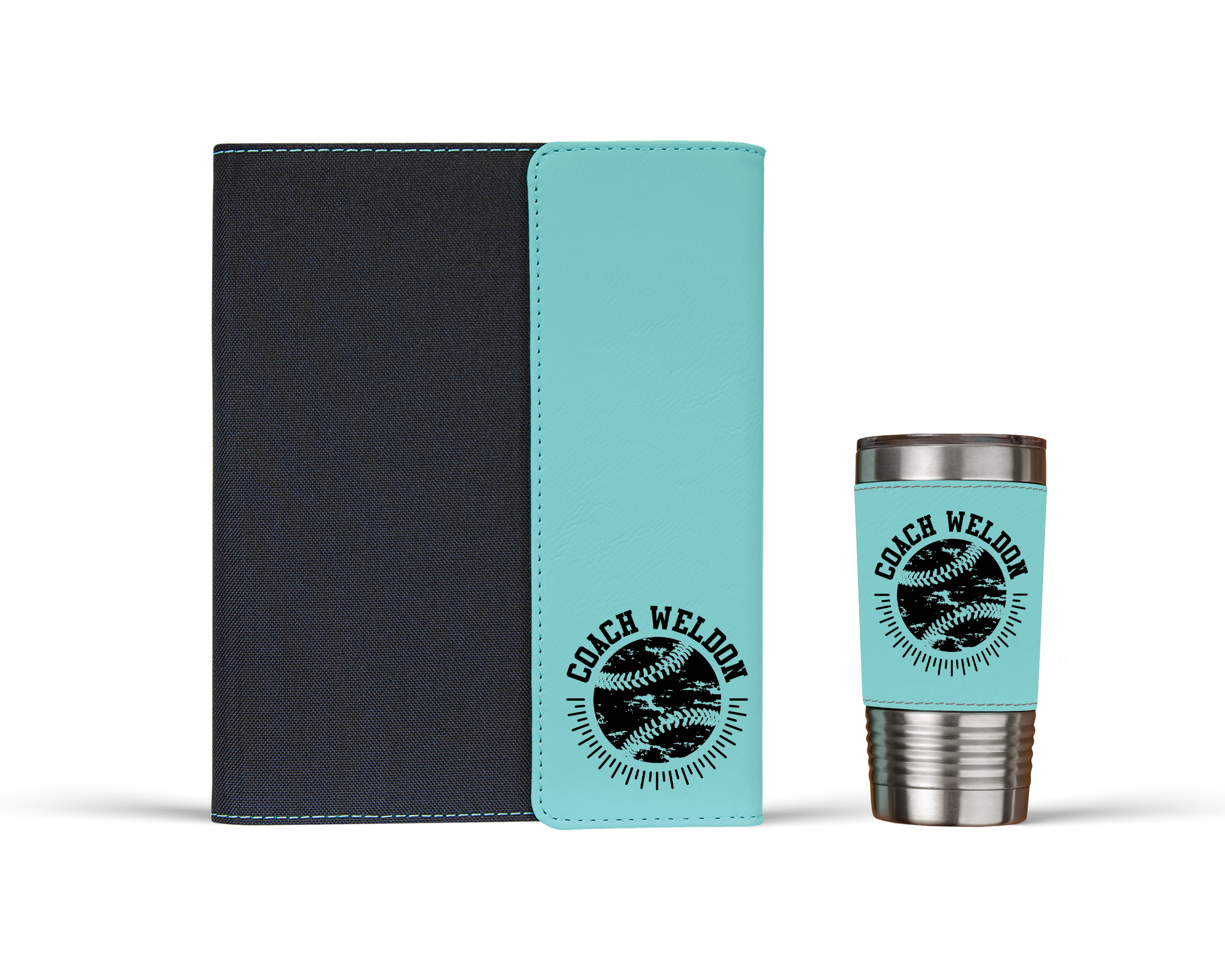 Personalized Distressed Baseball Coach Portfolio Notebook and Tumbler Set