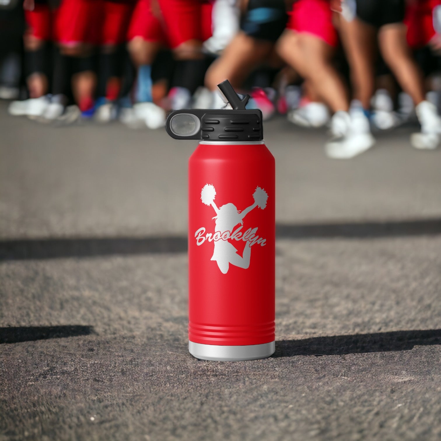 This Cheerleader water bottle is great for cheer team gifts, cheer camp gifts, competition teams, cheer seniors, cheer captains & cheer coaches!