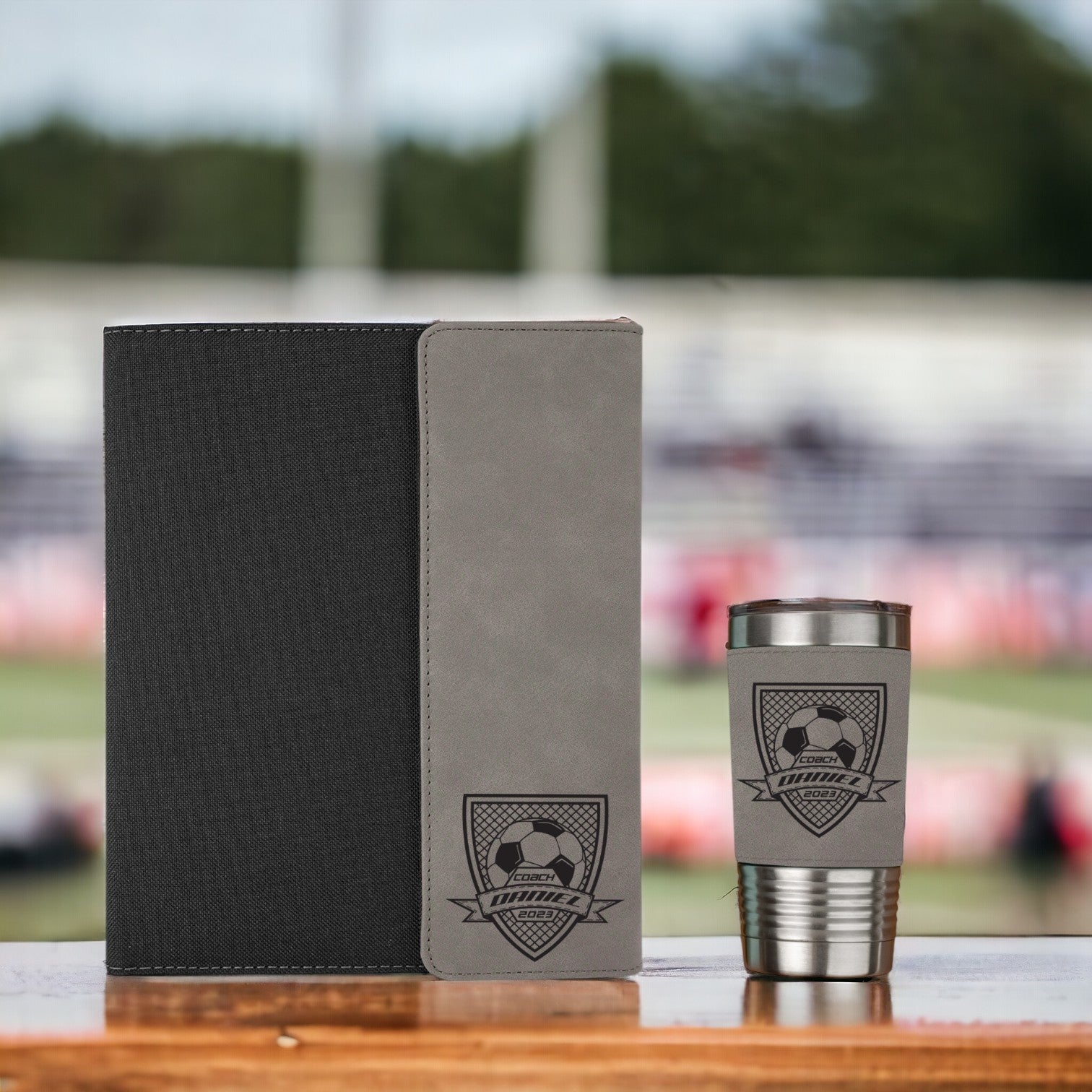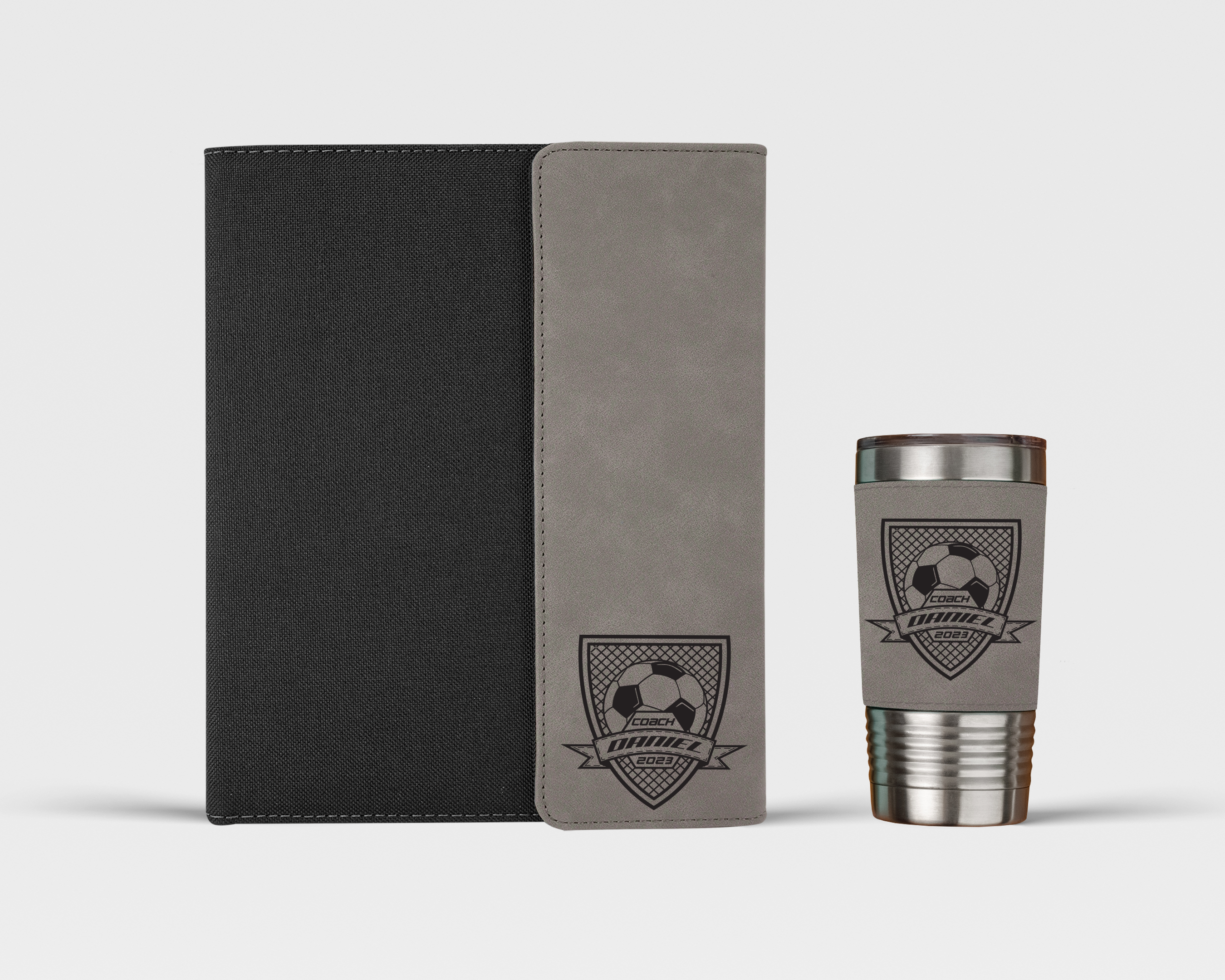 Soccer Coach personalized notebook and tumbler set is the perfect coach thank you gift for end of soccer season award banquets for coaches, assistant coaches and recreational soccer clubs.