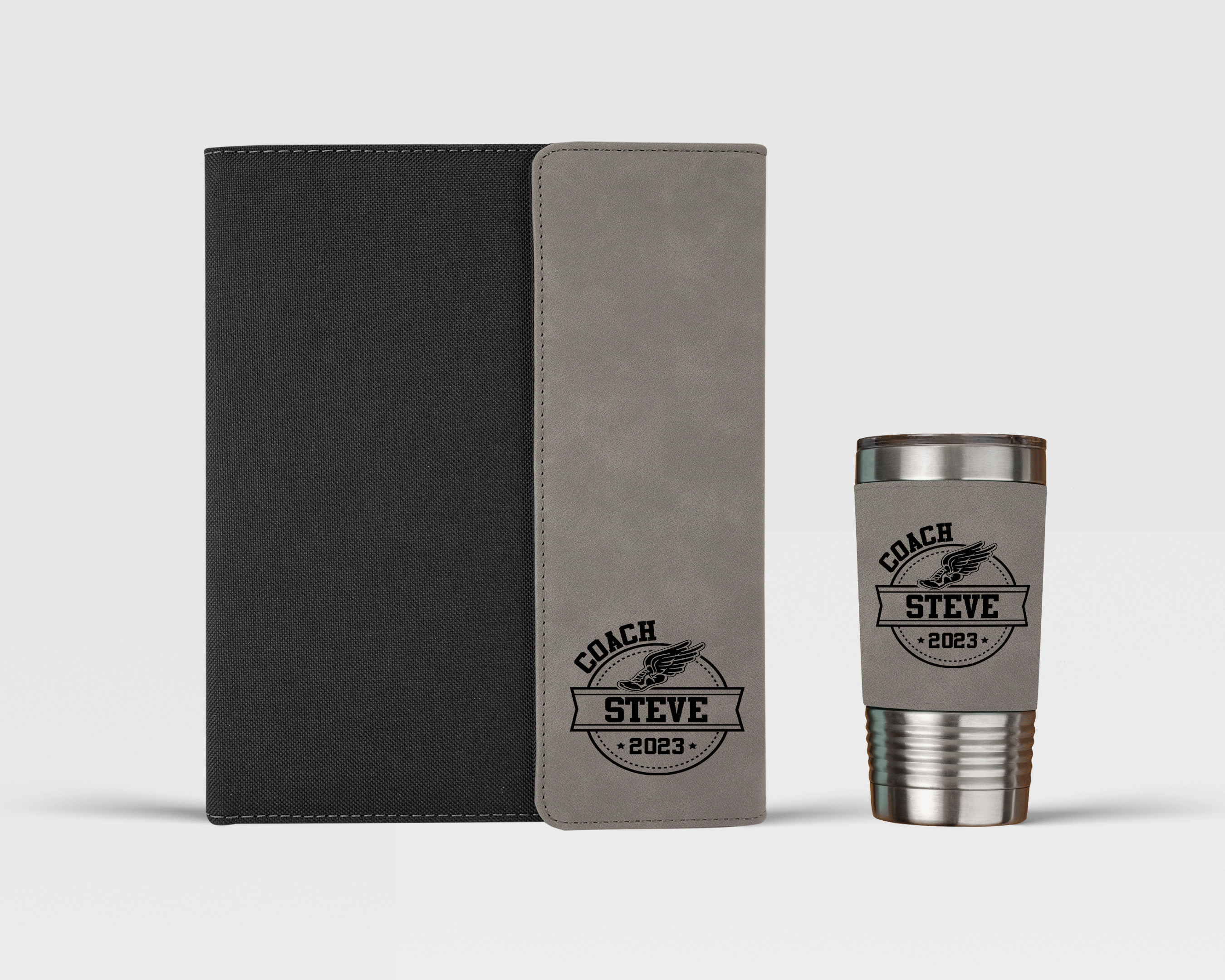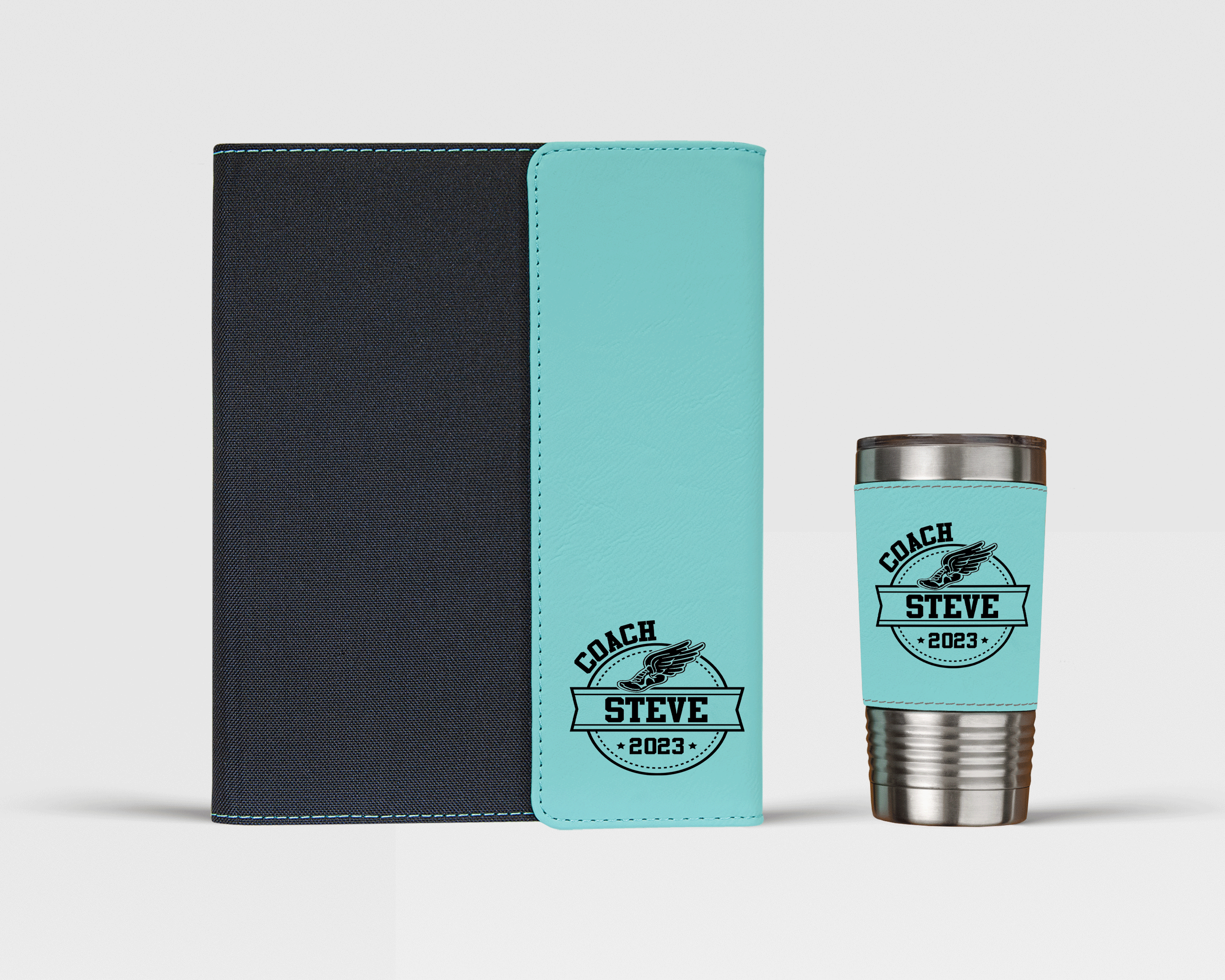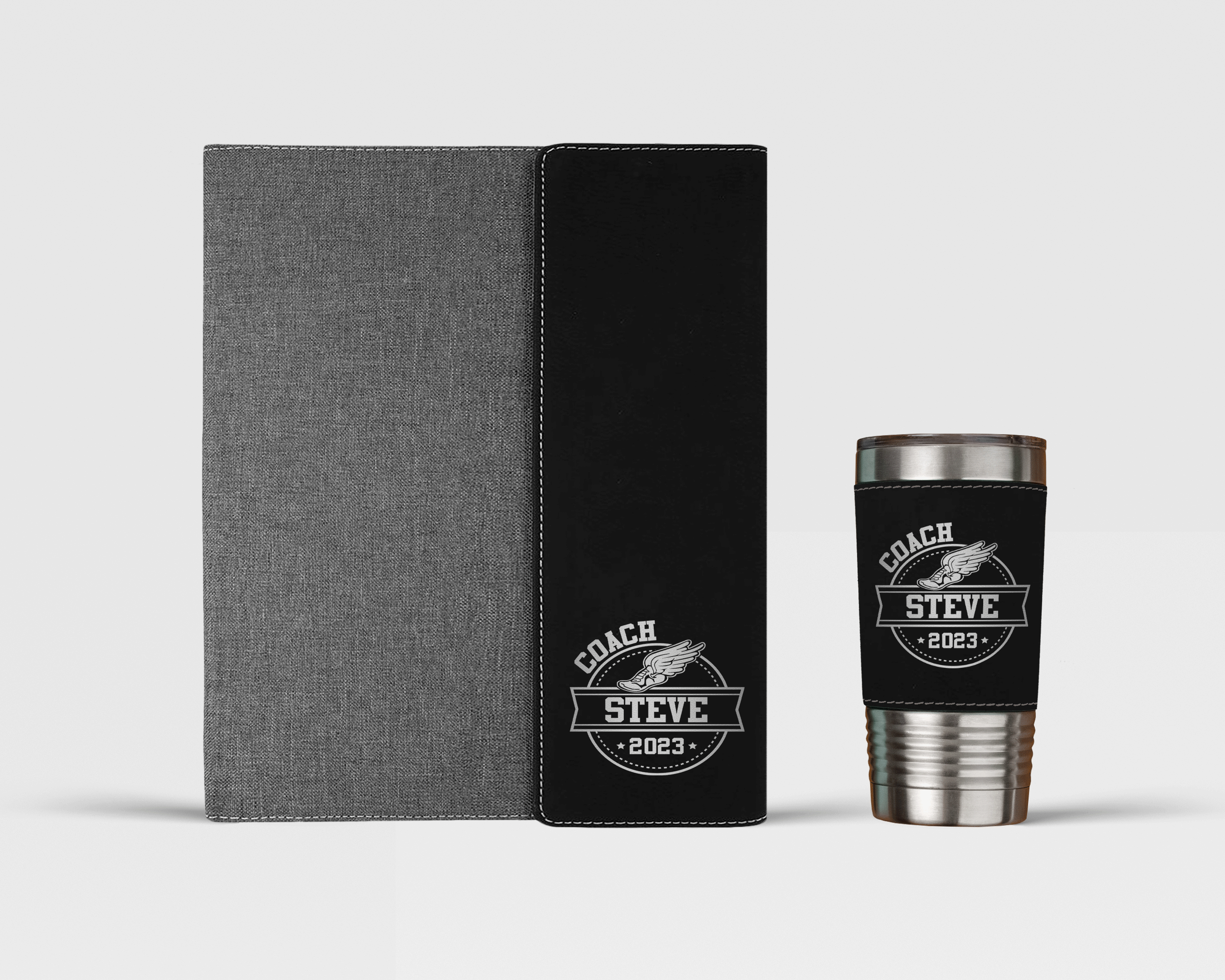 Make this gift even more special by adding your coach's name to the portfolio and/or tumbler. The laser engraving will make the portfolio and tumbler one-of-a-kind and ensure that your coach will always remember this special gesture.