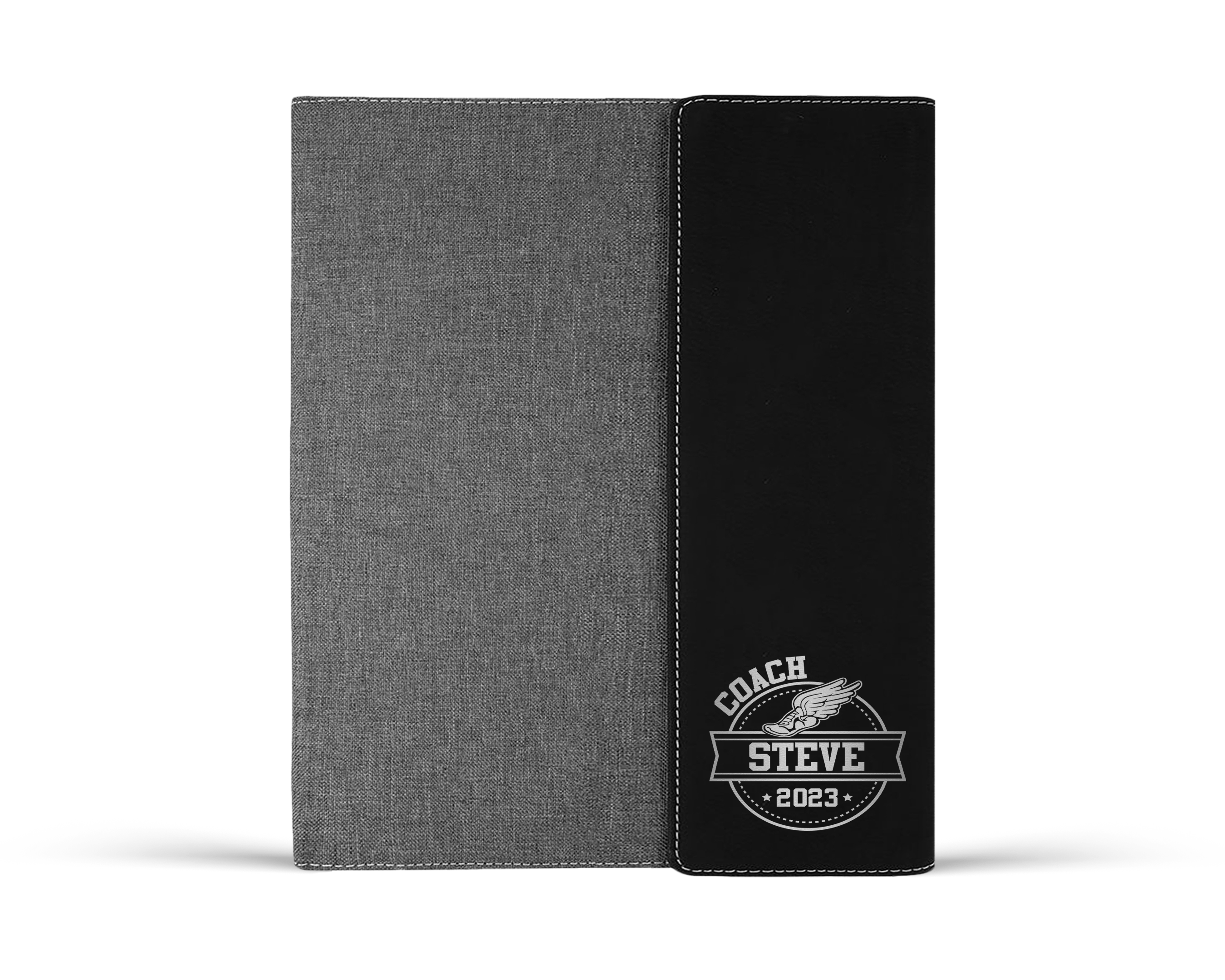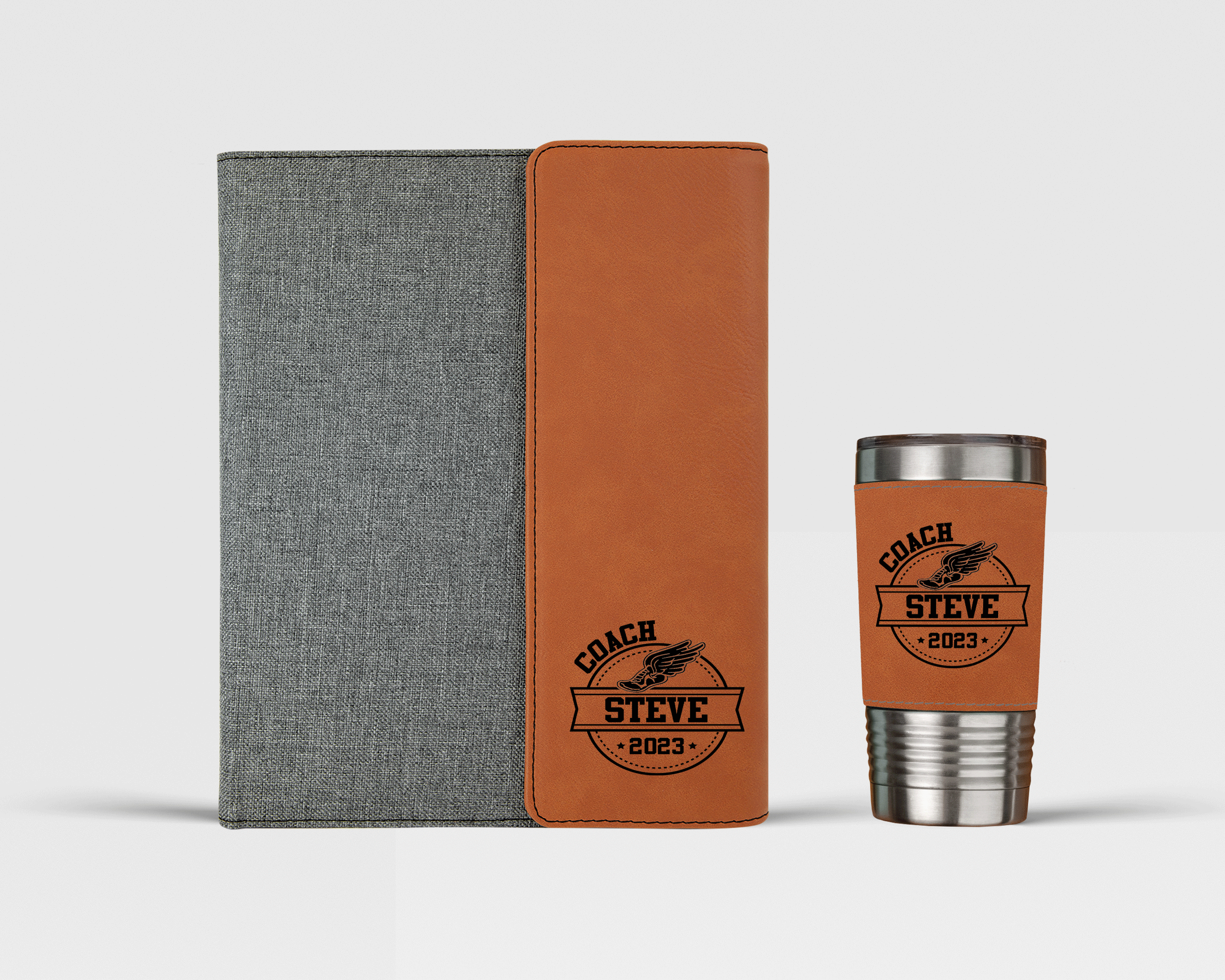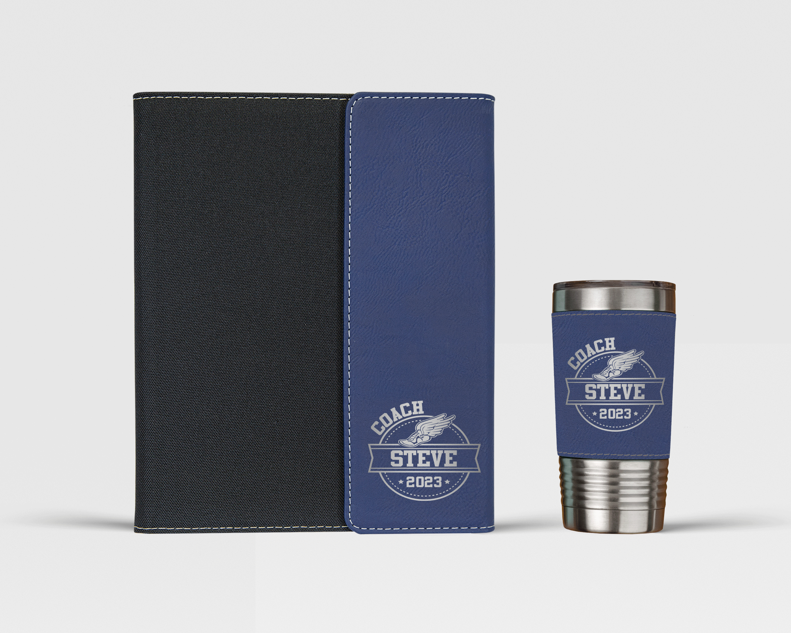 Make this gift even more special by adding your coach's name to the portfolio and/or tumbler. The laser engraving will make the portfolio and tumbler one-of-a-kind and ensure that your coach will always remember this special gesture.