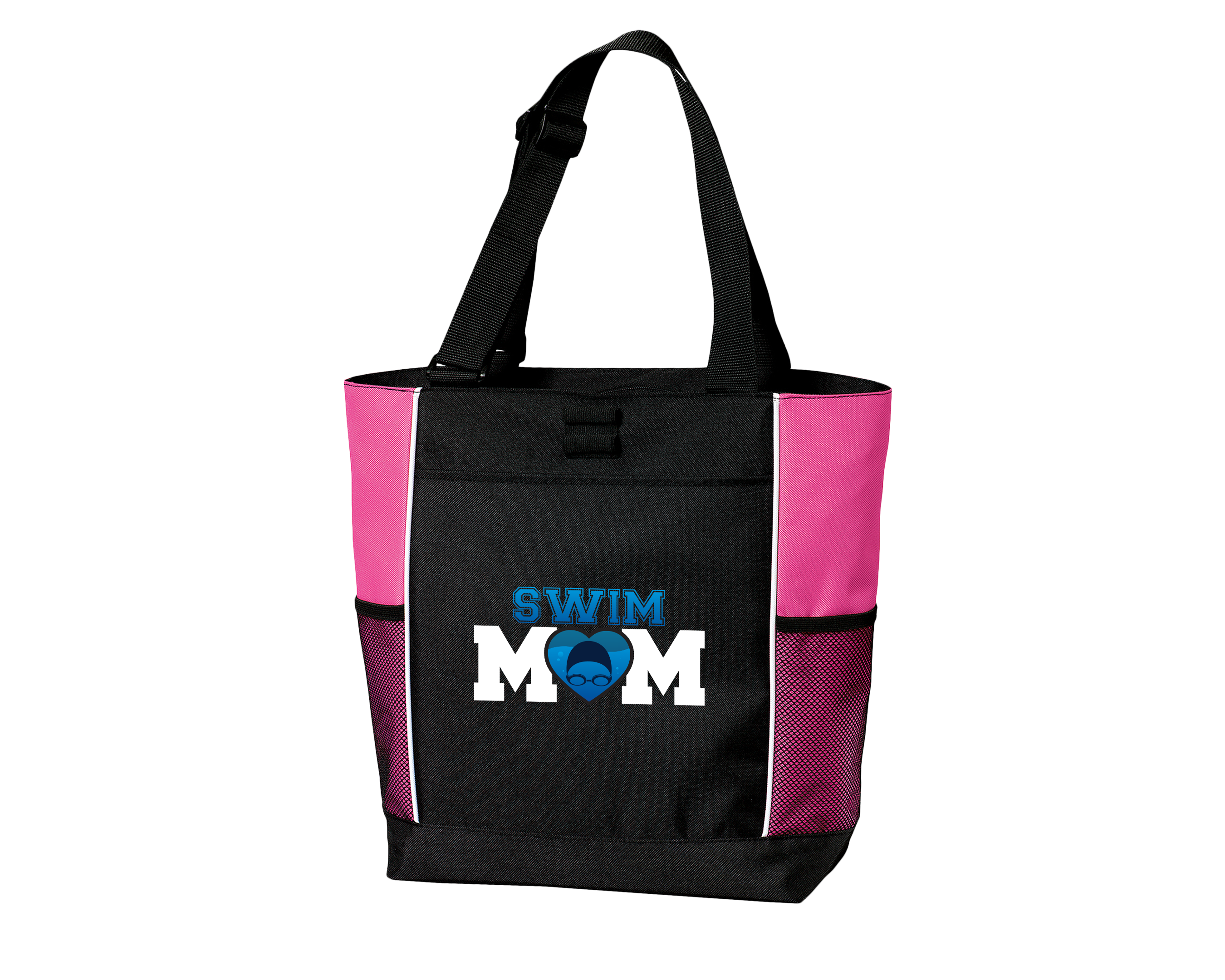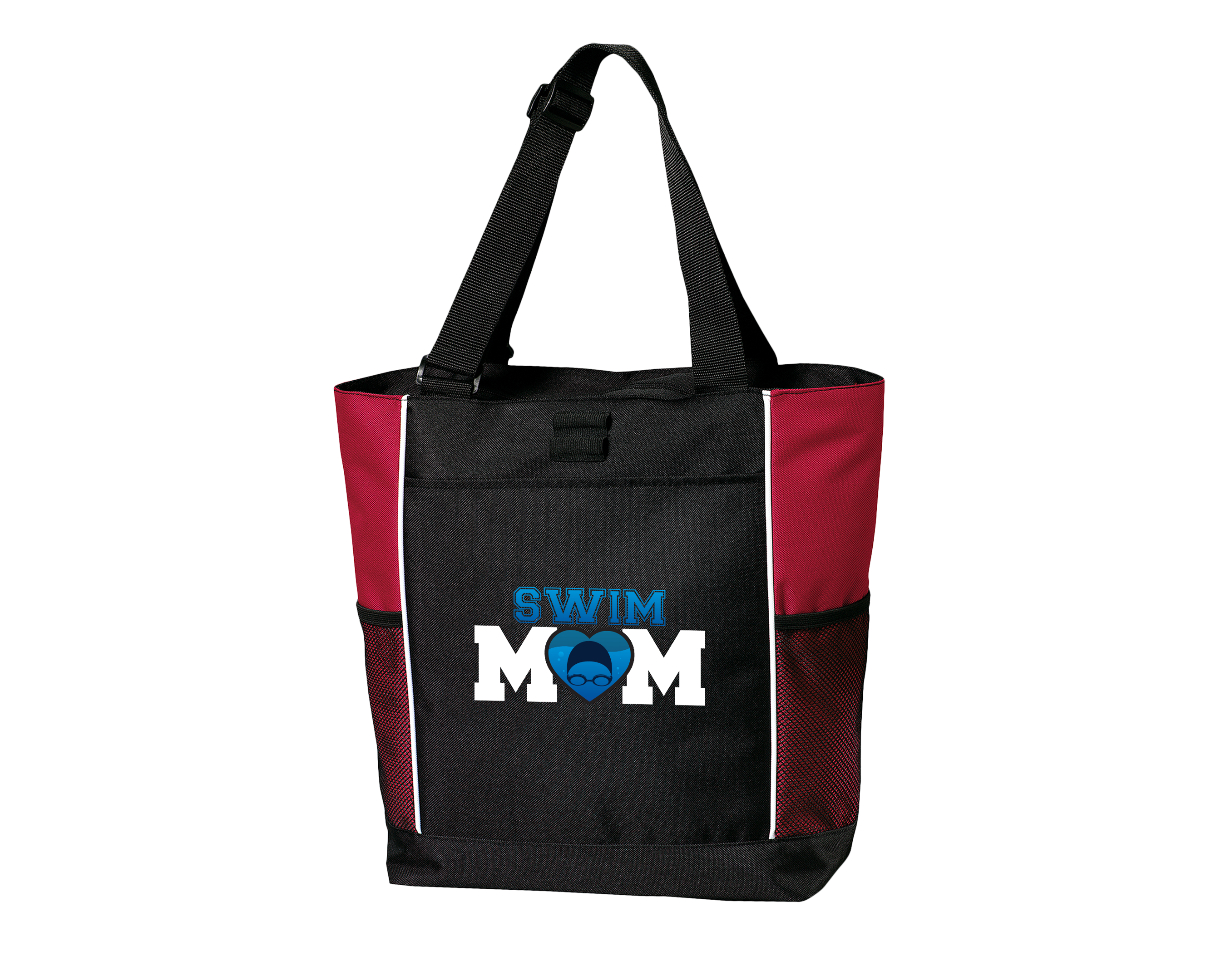 Calling all Swim Moms! Whether you're cheering on your swimmer at a meet or running them to practice, this sporty tote bag has you covered. It's the perfect size for carrying all the essentials, your snacks, drinks an extra towel. Be the envy of all the other moms at the pool and order your Swim Mom tote bag today!