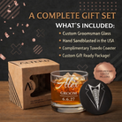 EXCEPTIONAL SANDBLASTED ENGRAVING Our glasses are meticulously sand carved by hand, producing a deep, precise engraving that results in a stunning frosted finish. The design is permanent and fade-resistant, ensuring that the personalized details remain beautifully intact for years to come.