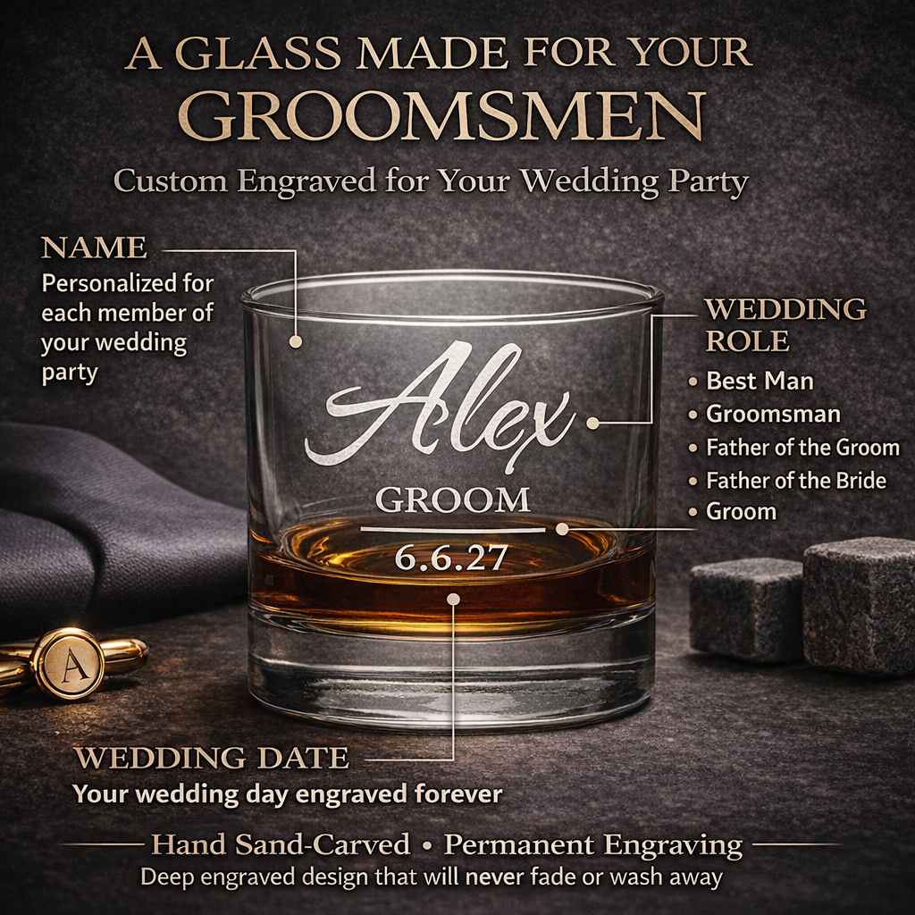 Personalized Groomsman Whiskey Glass β Custom Engraved Wedding Party Barware