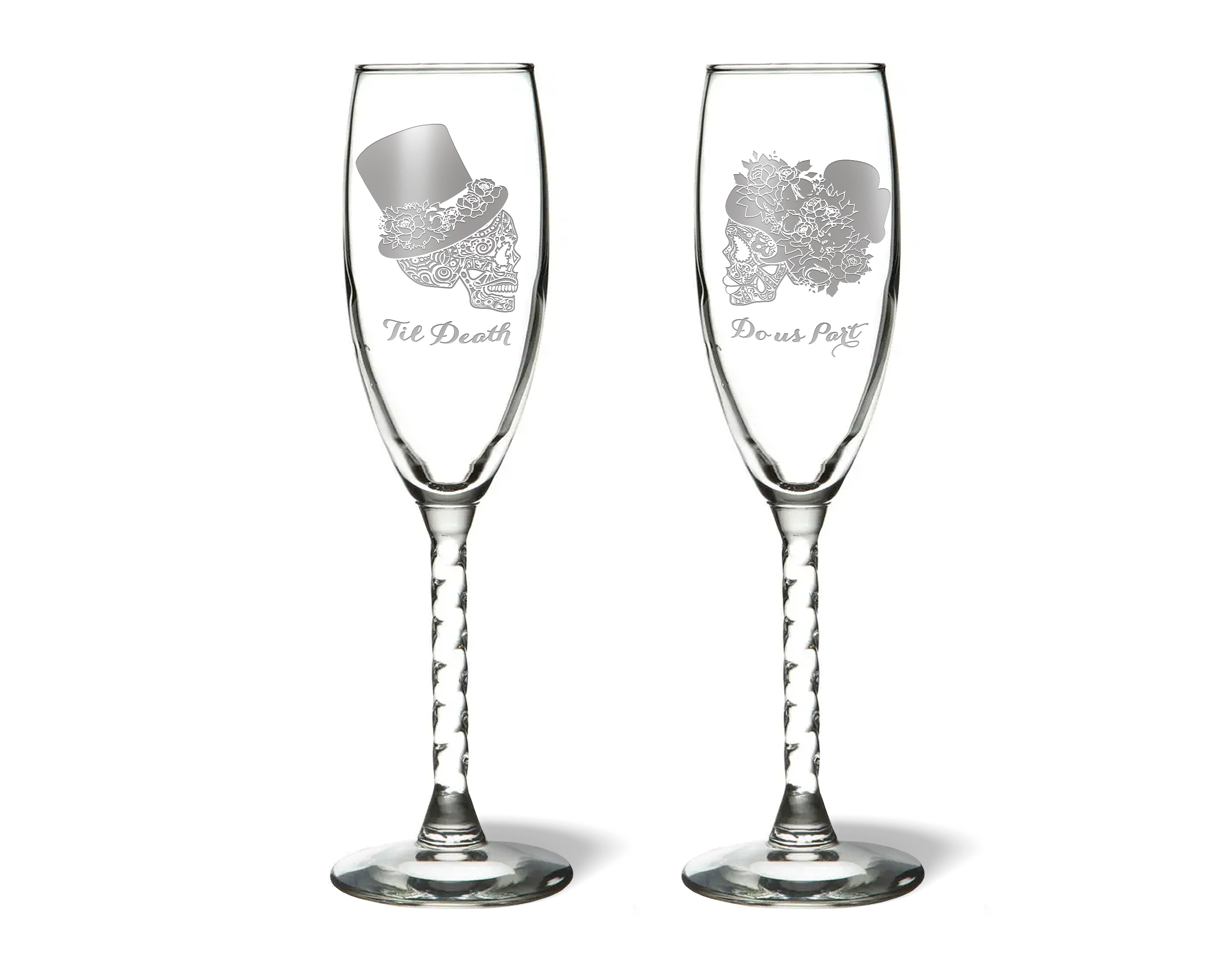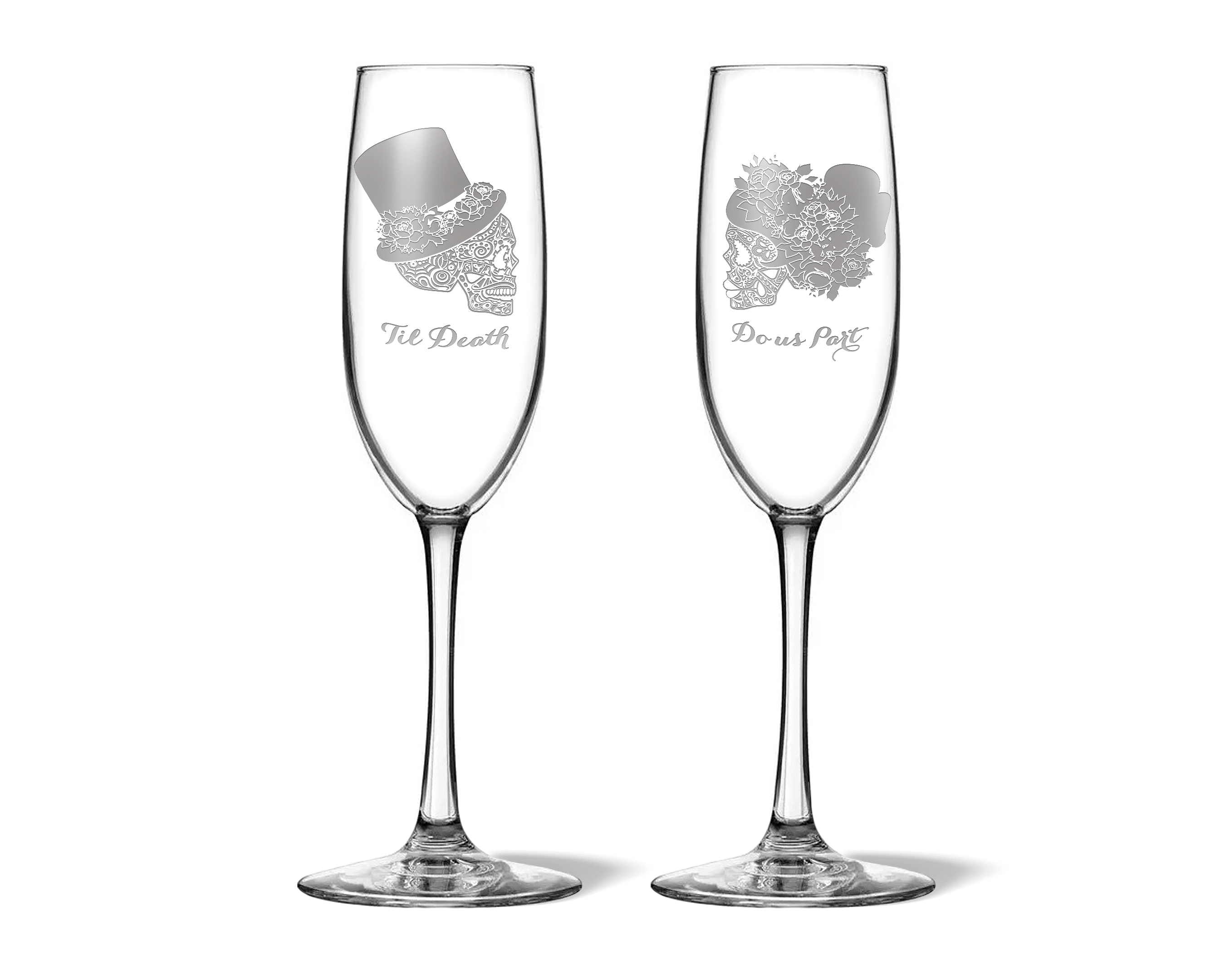 Personalized Til Death Do Us Part Sugar Skull Bride and Groom Champagne Flutes: A Unique and Memorable Gift