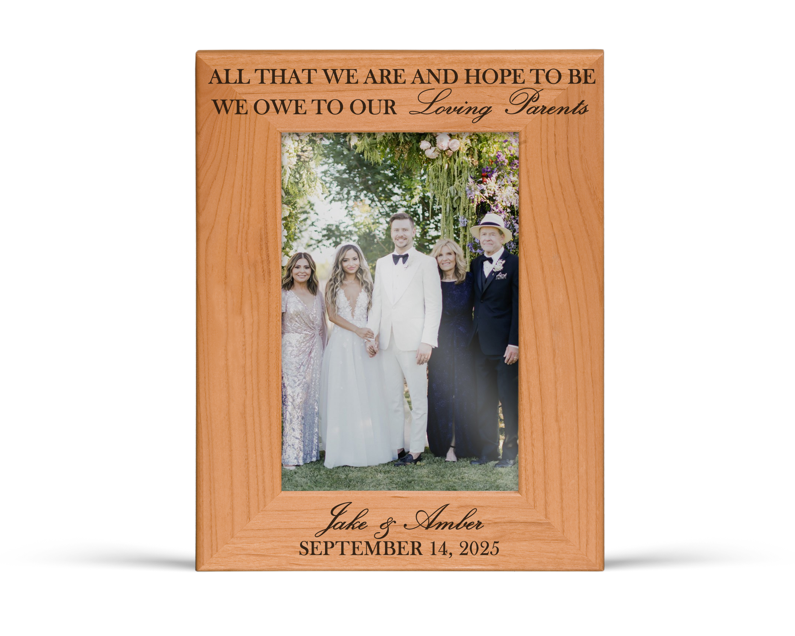 This wood picture frame is a heartfelt way for a couple to honor the love, guidance, and support that shaped them. It’s a meaningful keepsake created to thank parents on a wedding day filled with gratitude and celebration.