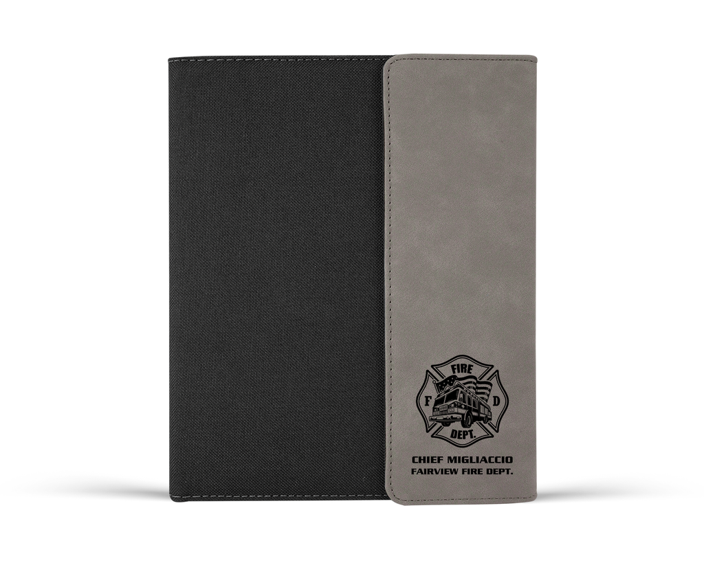 STYLISH AND DURABLE Crafted with a canvas body and a leatherette fold-over magnetic closure, this padfolio combines sophistication with durability. The high-quality materials ensure it can withstand the demands of a firefighter's busy life and is easy to clean, maintaining its polished look over time.