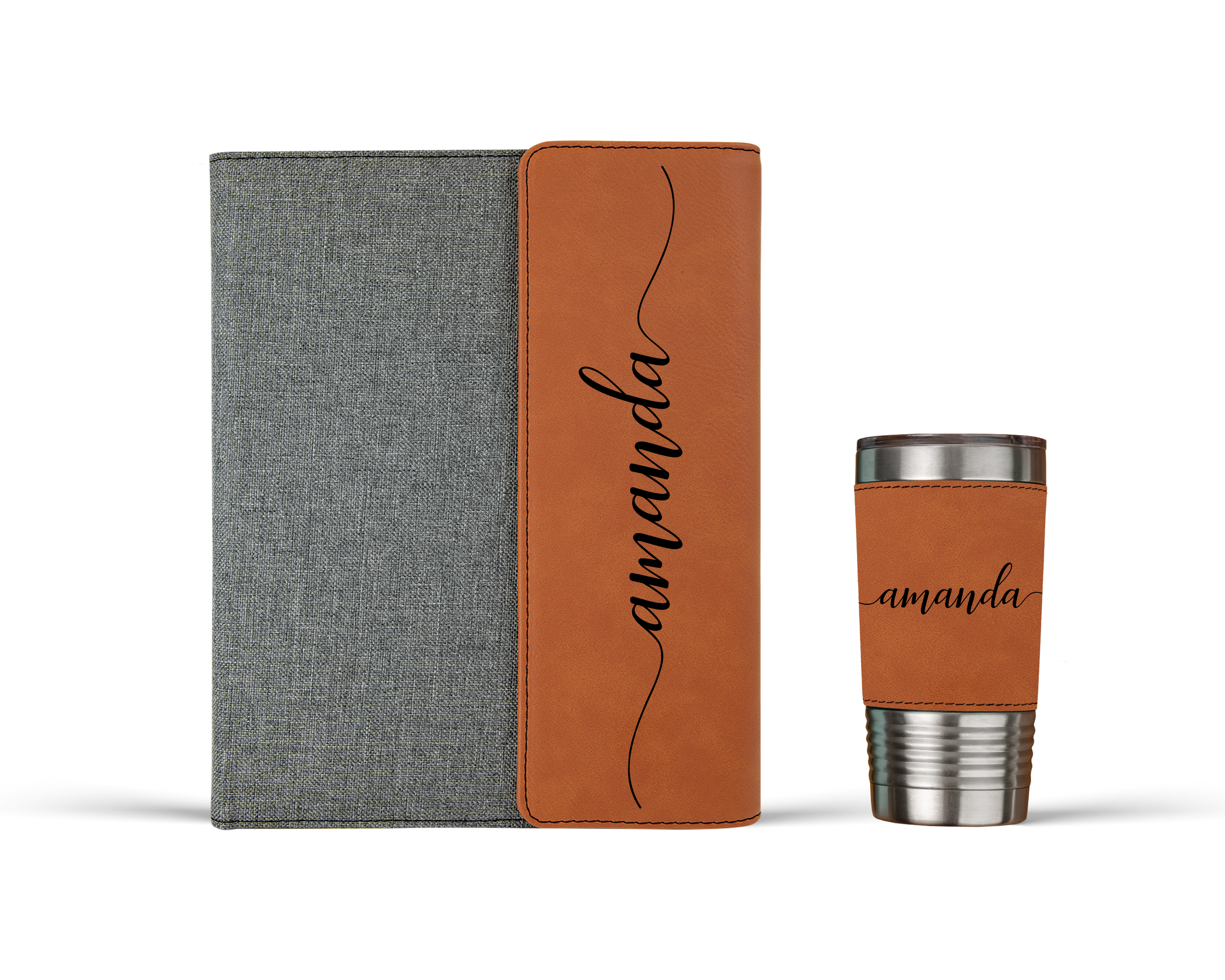 The combo gift set includes a matching 20oz insulated tumbler that keeps drinks hot or cold on the go. Engraved to complement the portfolio perfectly. This is a gift that anyone will be proud to carry.