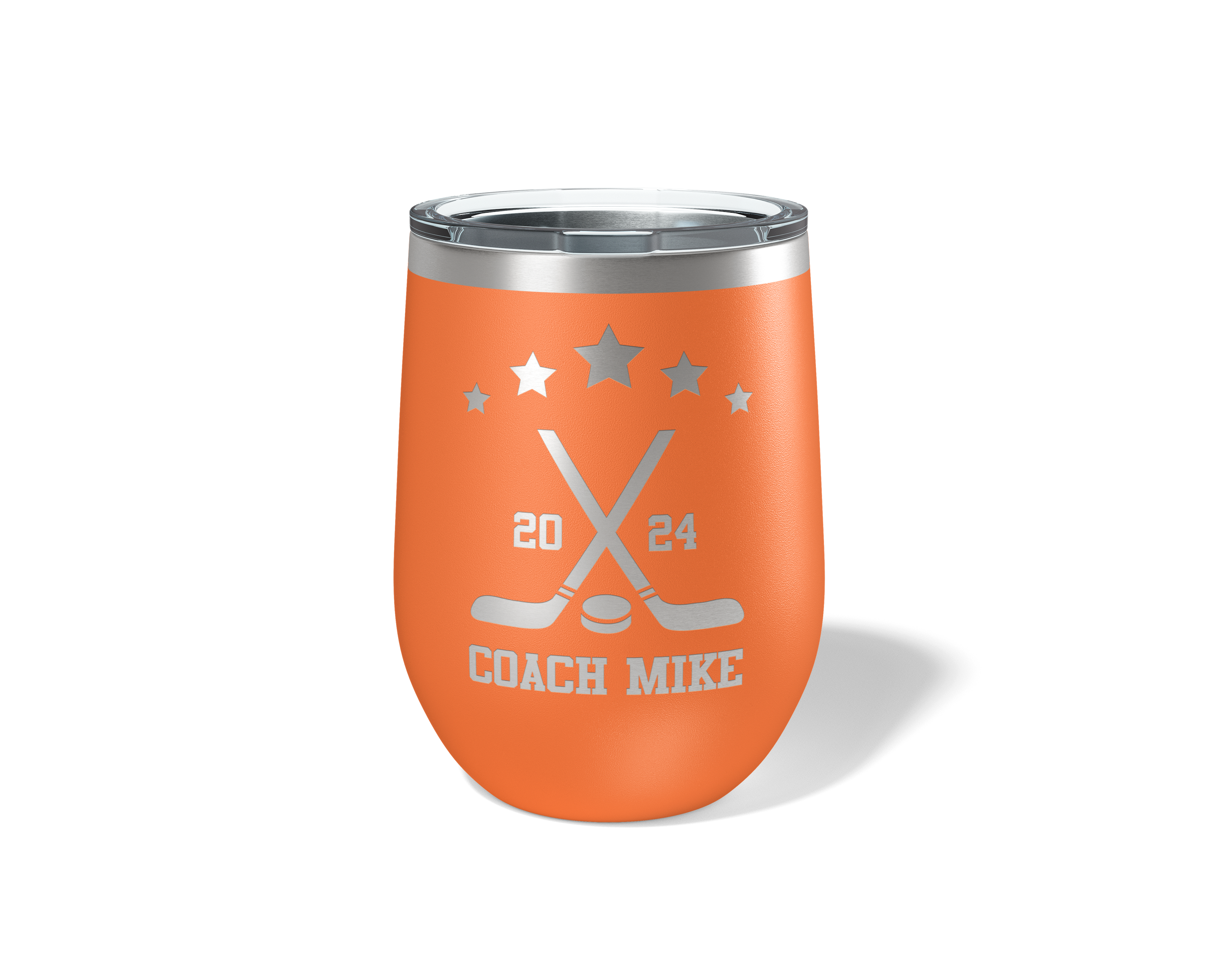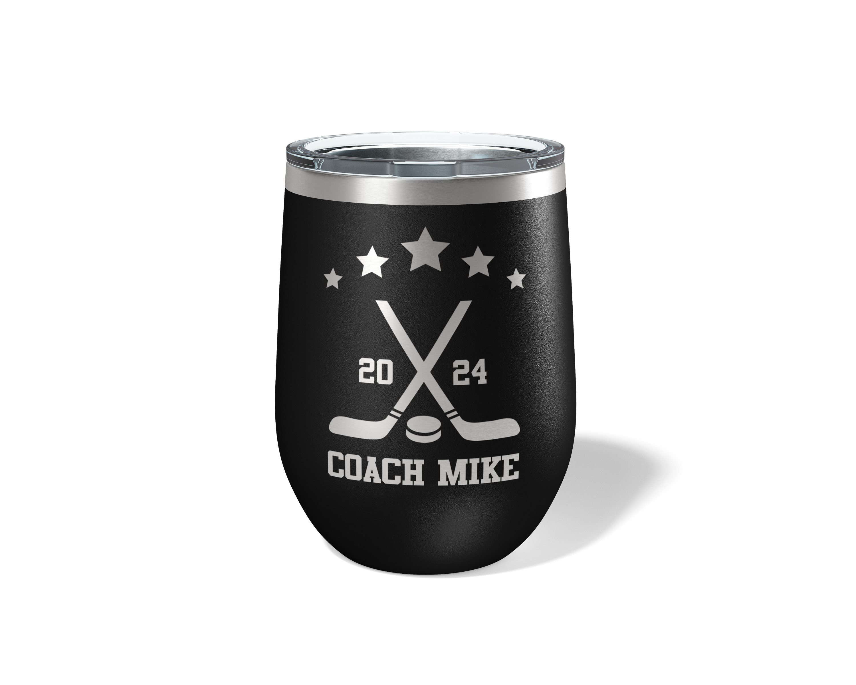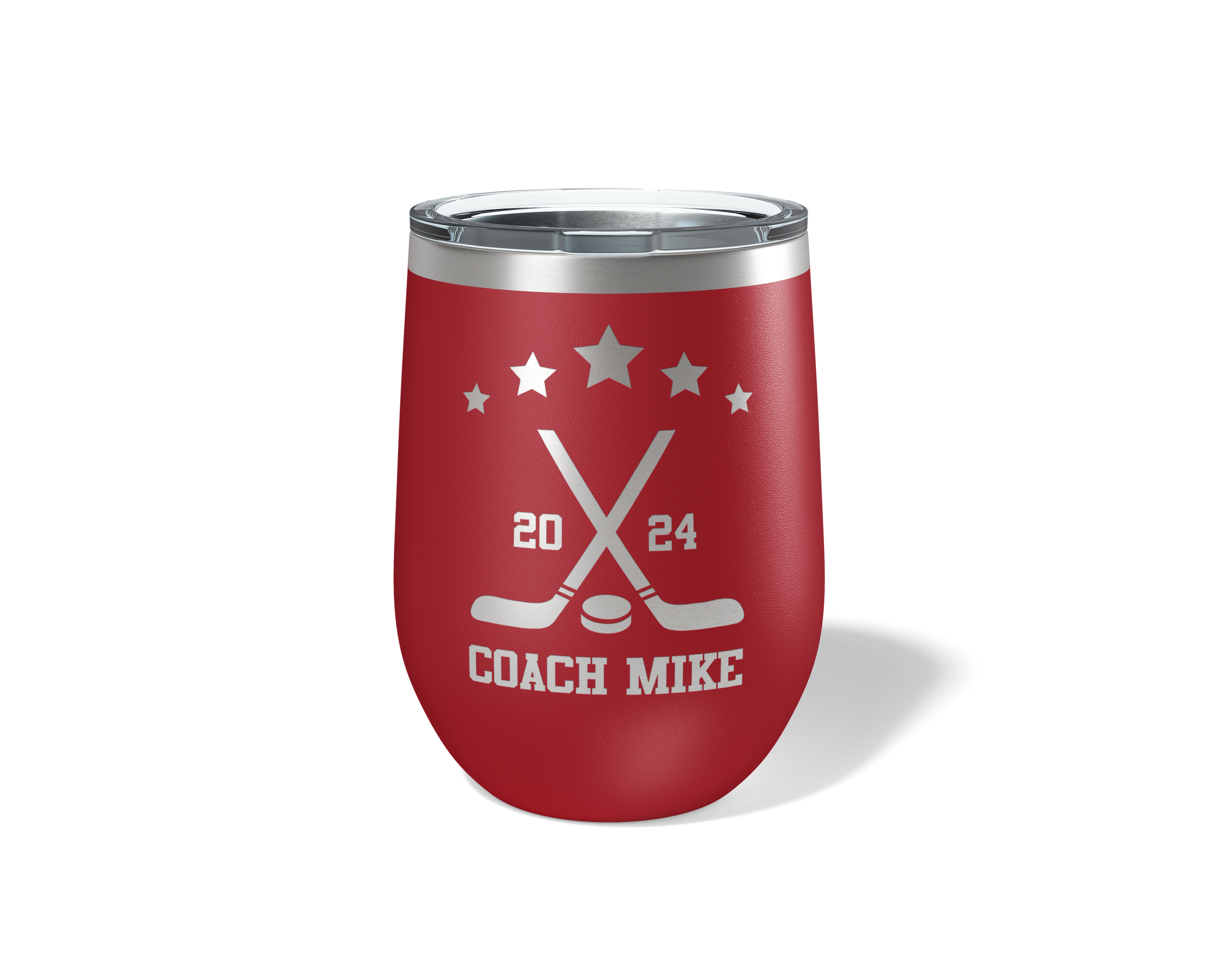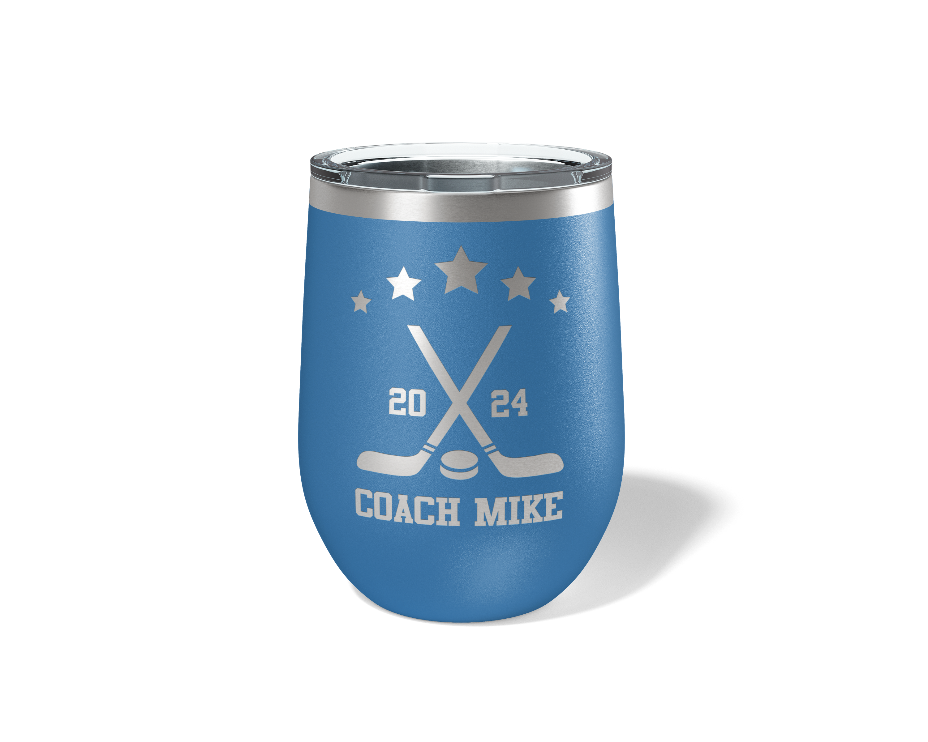 Our tumblers are engraved with our hexagon hockey coach design and personalized with the coach's name and year. They make great gifts for end-of-season celebrations, thank you gifts, or just as a way to show your appreciation for all that your coach does.