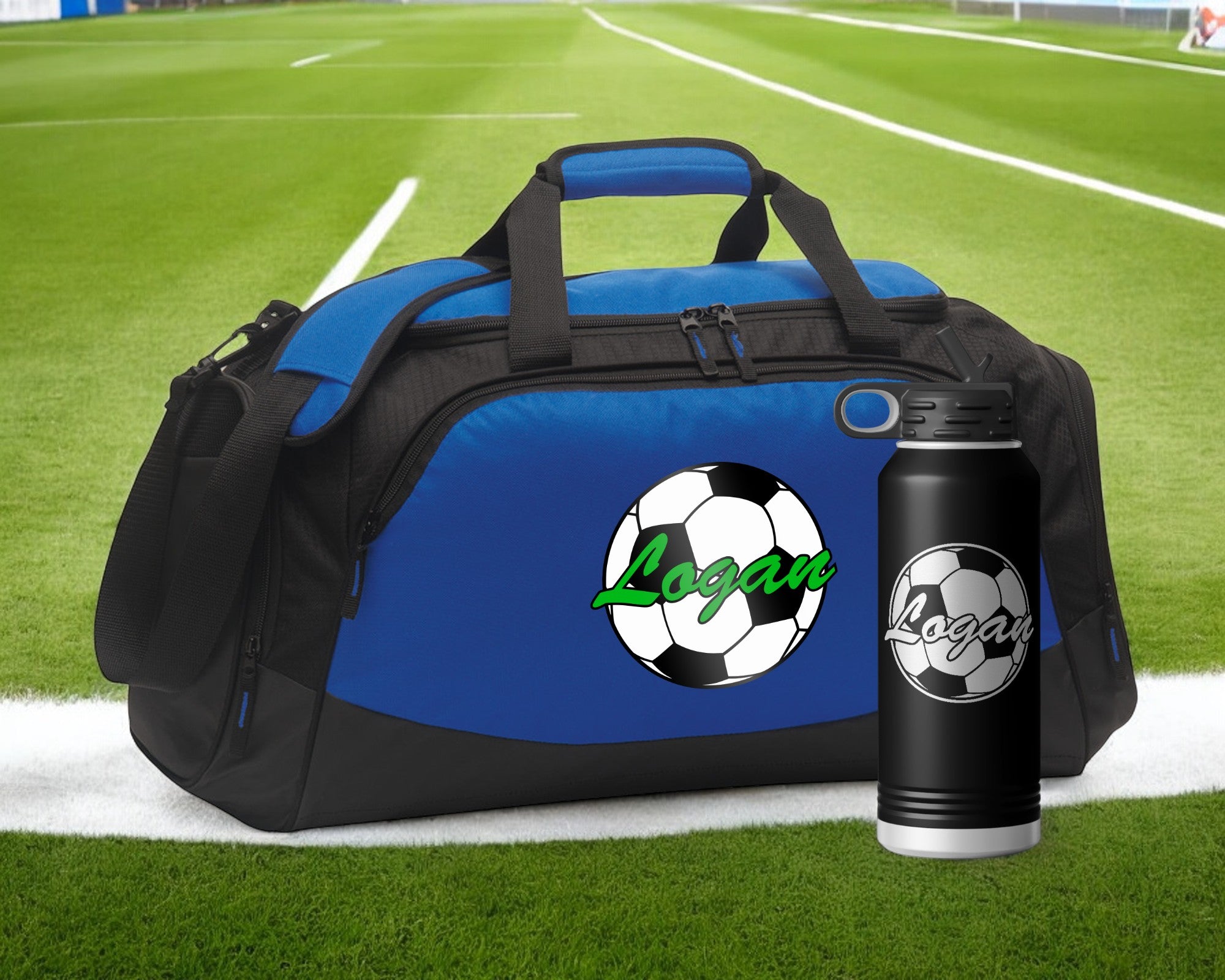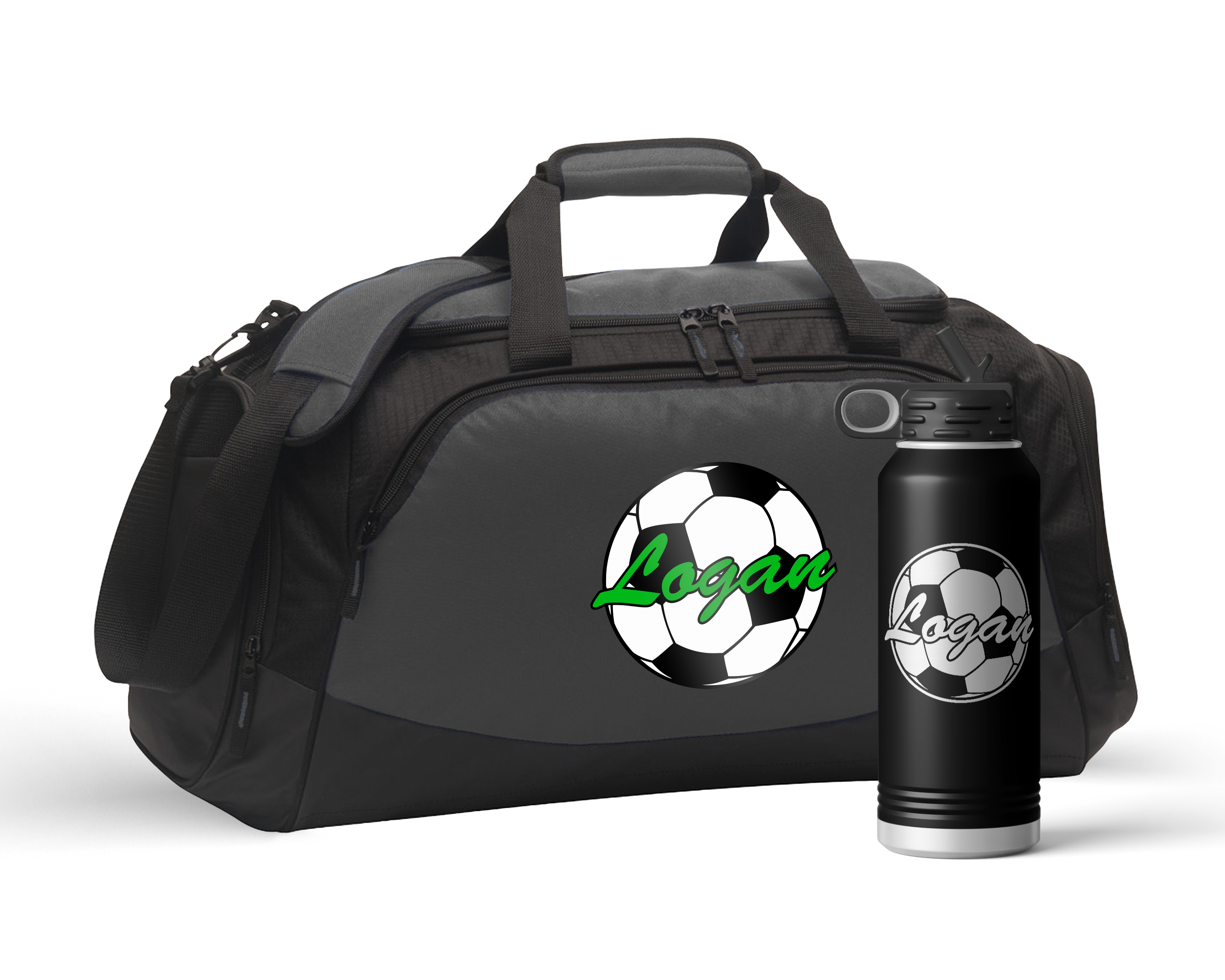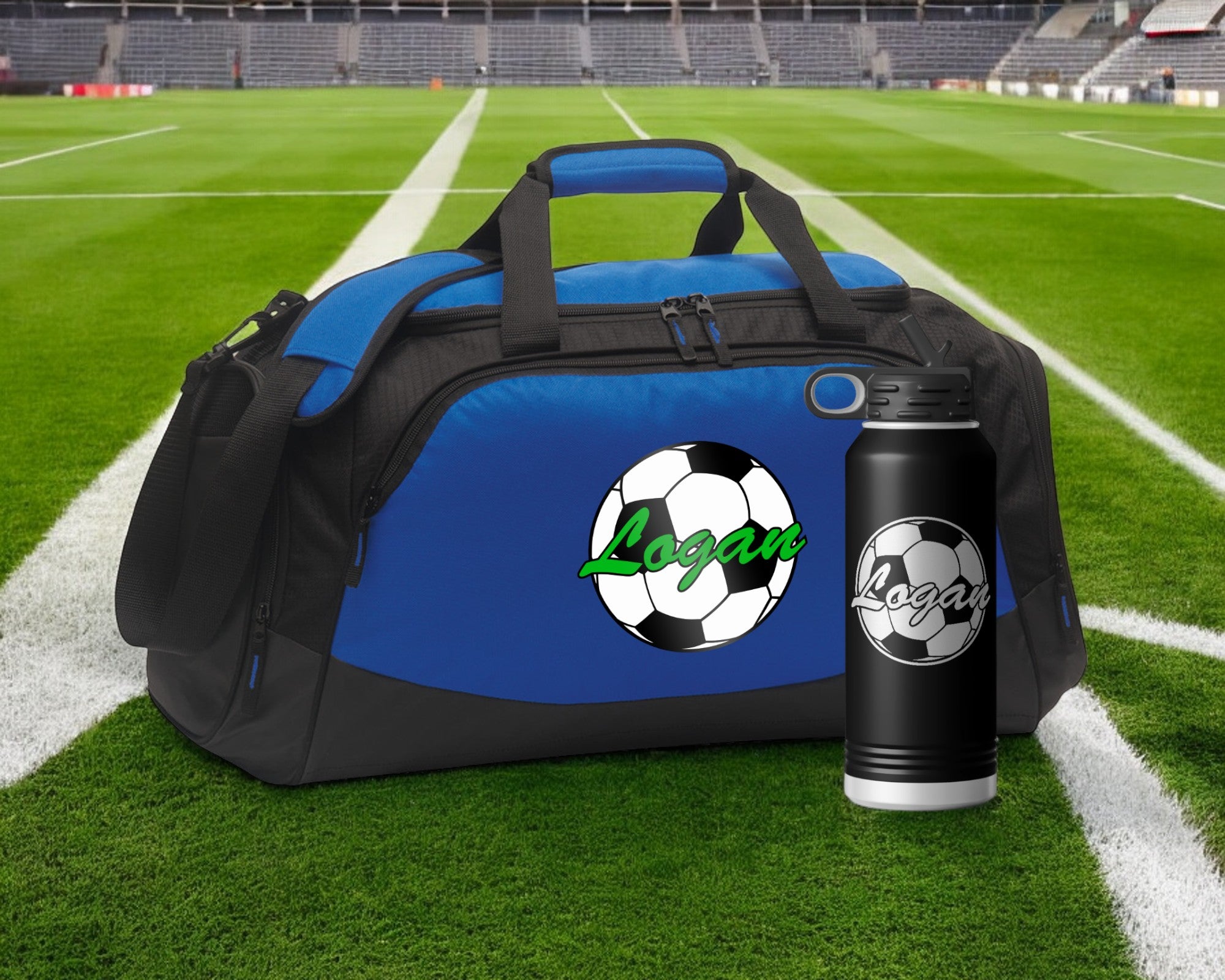 Personalized Soccer Player Athletic Duffle Bag and Water Bottle Set