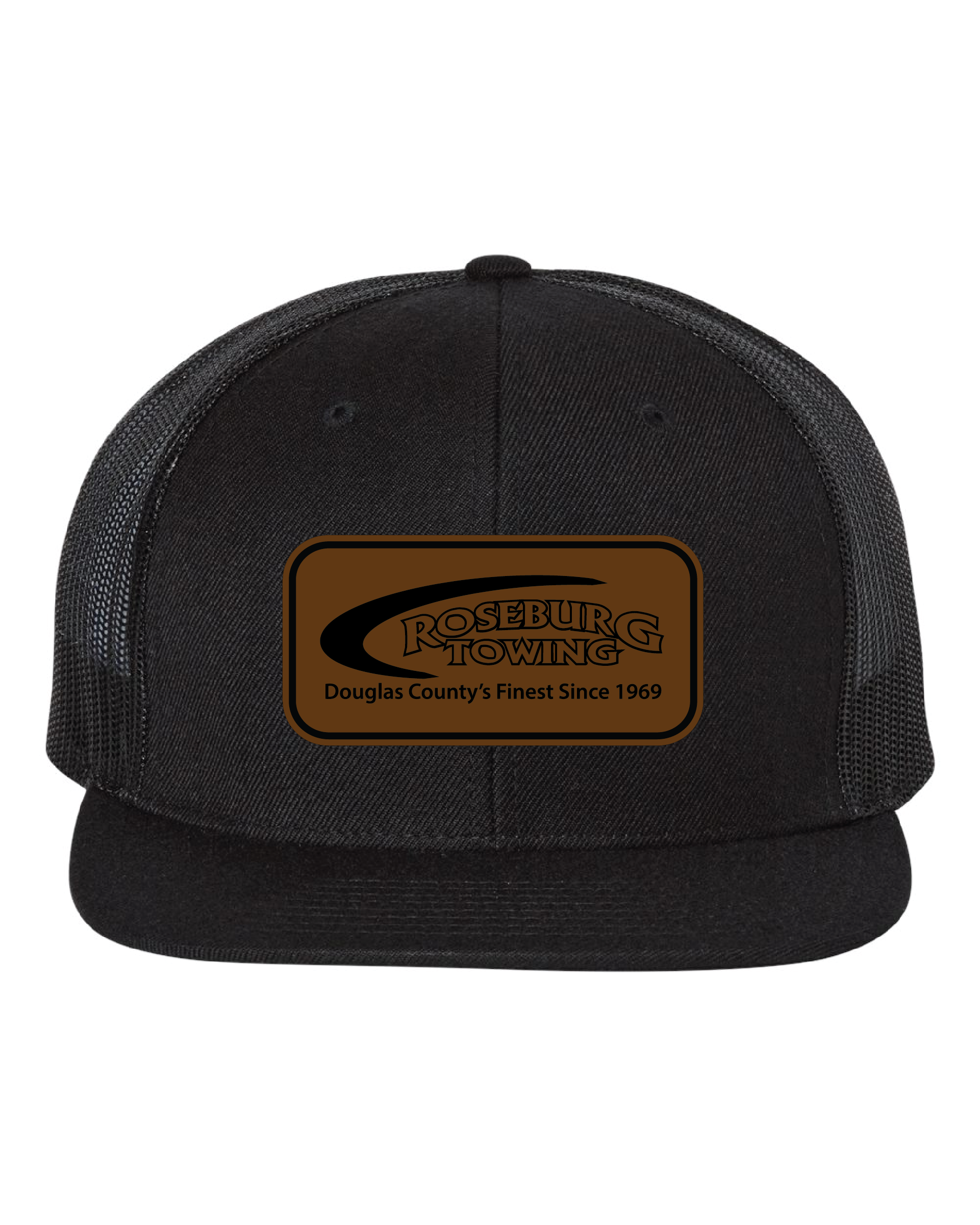 Roseburg Towing Hat Richardson 511 Flatbill Black/Black with Leather Patch