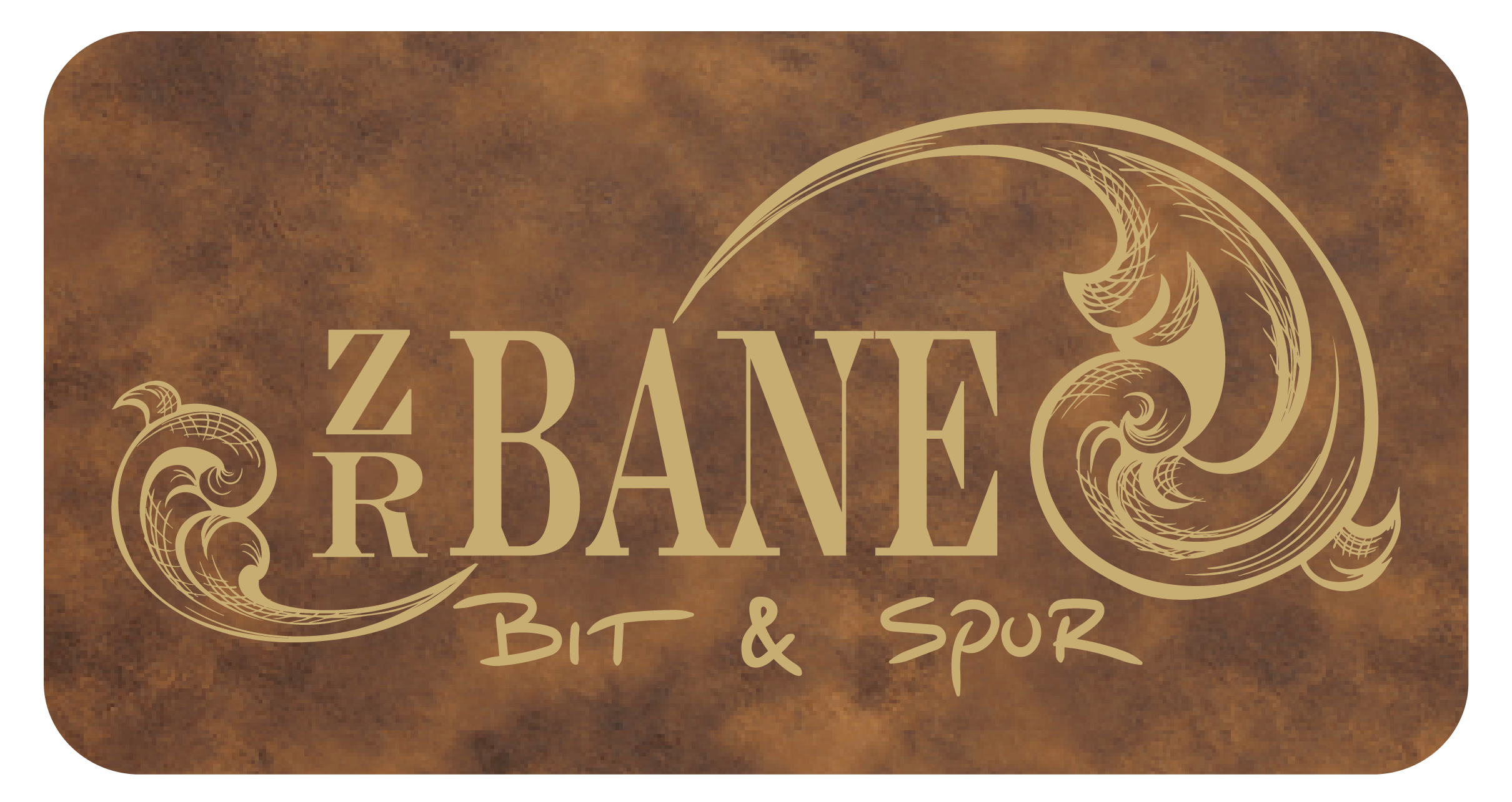 Z R Bane Bit & Spur Scrollwork logo Patch - Rustic Gold